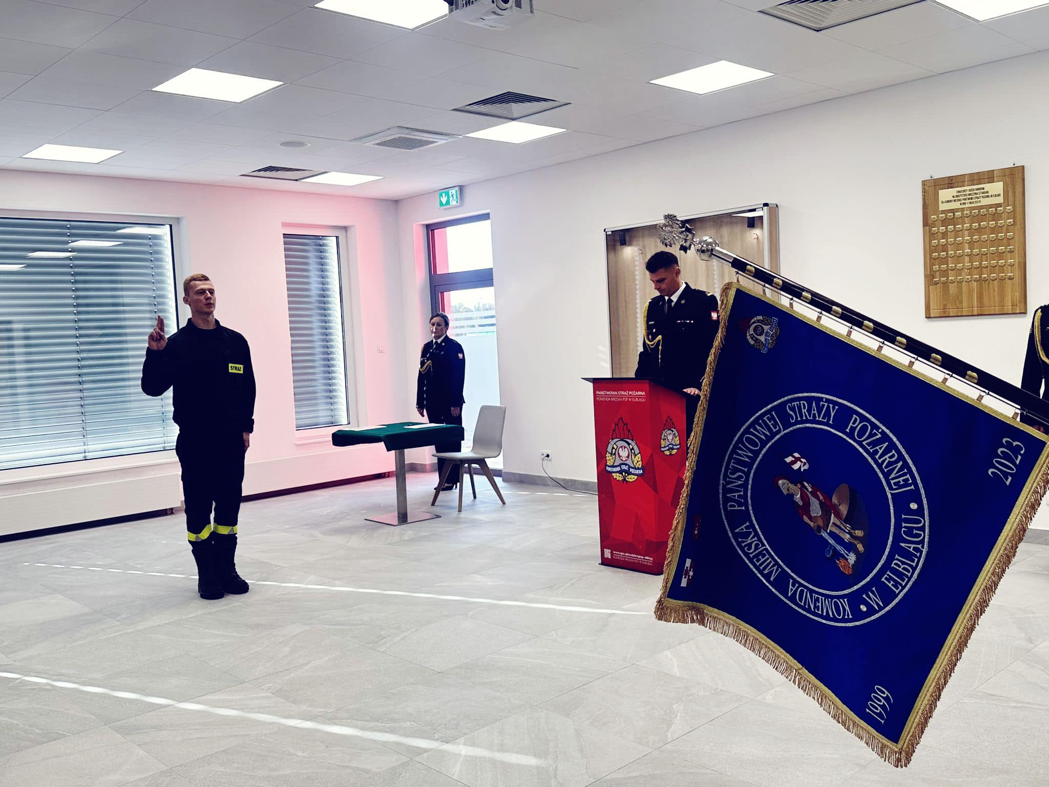 We wtorek 08 października 2024 roku w siedzibie Komendy Miejskiej Państwowej Straży Pożarnej w Elblągu odbyła się uroczysta zbiórka zorganizowana z okazji ślubowania nowo przyjętego funkcjonariusza.