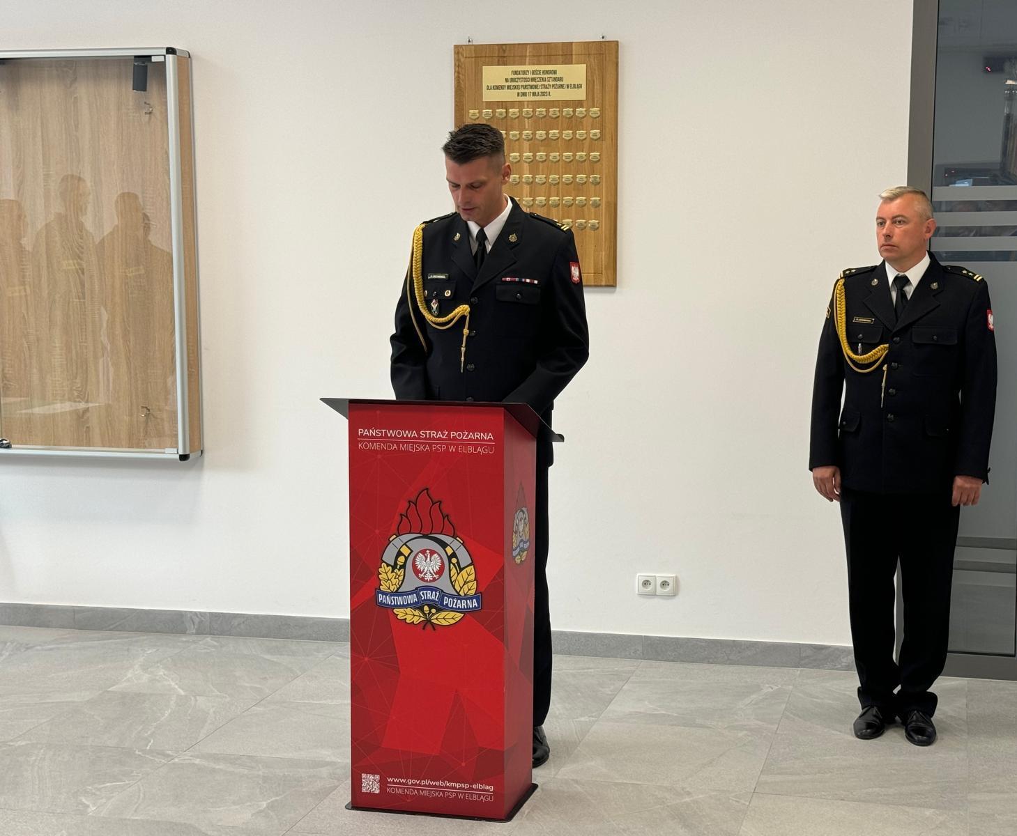 Ślubowanie przyjął mł. bryg. Bogdan Grzymowicz - Komendant Miejski PSP w Elblągu. W uroczystości wziął udział także Zastępca Komendanta Miejskiego PSP w Elblągu bryg. Robert Licznerski oraz pododdział złożony z funkcjonariuszy elbląskiej Komendy.