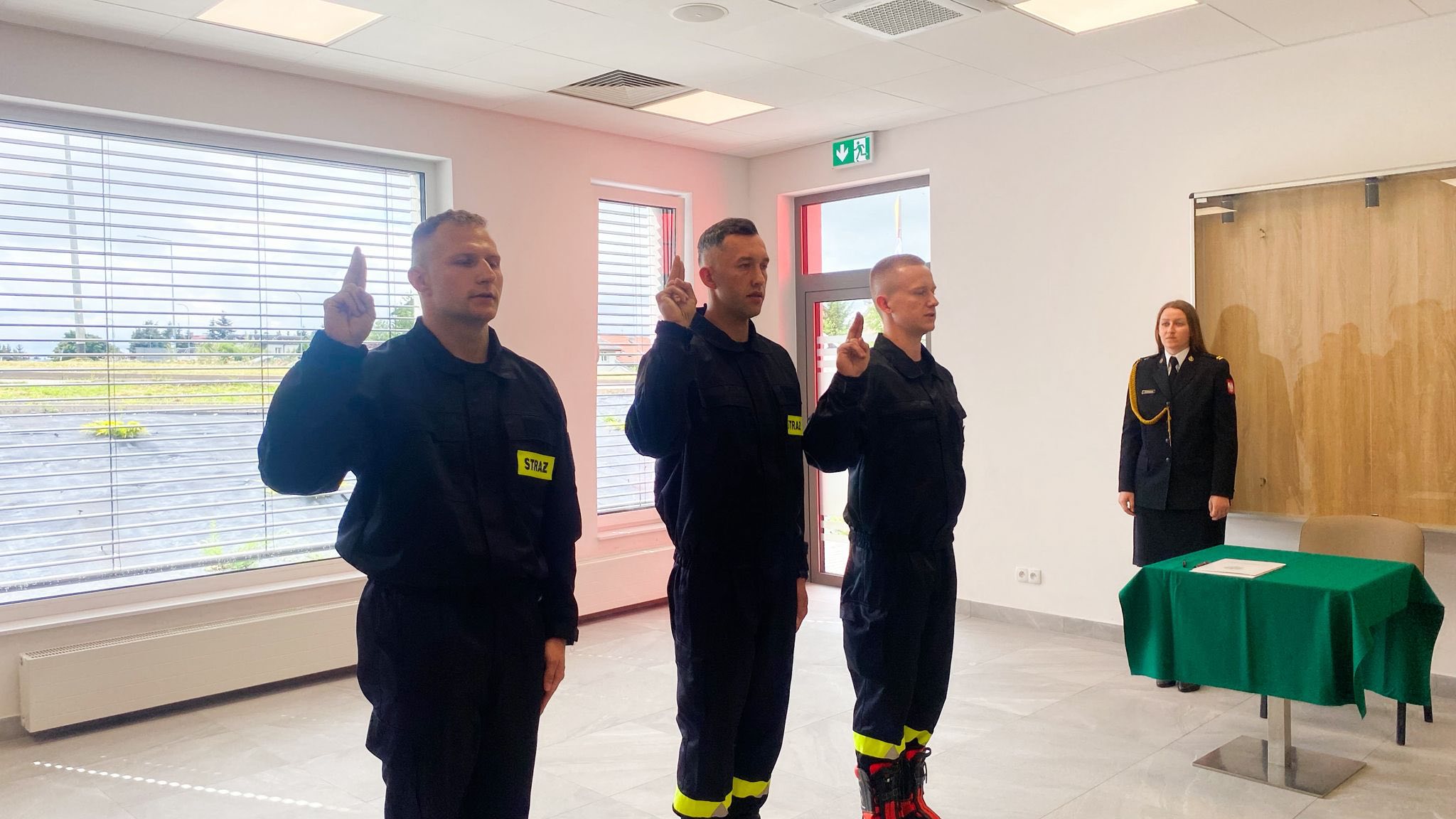 “Ja, obywatel Rzeczypospolitej Polskiej, świadom podejmowanych obowiązków strażaka, uroczyście ślubuję być ofiarnym i mężnym w ratowaniu zagrożonego życia ludzkiego i wszelkiego mienia – nawet z narażeniem życia.