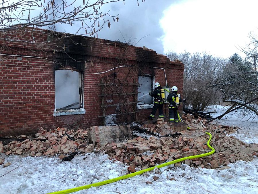 Z uwagi na intensywne opady śniegu dojazd do miejsca zdarzenia był bardzo utrudniony. Drogę dla samochodów pożarniczych torowali okoliczni mieszkańcy wykorzystując do tego ciągnik rolniczy z pługiem oraz koparko-ładowarkę. Po dotarciu na miejsce pierwszych jednostek ochrony przeciwpożarowej (JOP) strażacy zastali w pełni rozwinięty pożar jednorodzinnego budynku mieszkalnego z częściowo zawaloną konstrukcją dachu. Z uzyskanych na miejscu informacji okazało się, że budynek był zamieszkiwany przez dwie osoby, z czego jedna pozostawała w środku. Druga zdołała opuścić budynek przed przyjazdem JOP i została odwieziona ciągnikiem do pobliskiej miejscowości, gdzie oczekiwała na przybycie zespołu ratownictwa medycznego (ZRM).