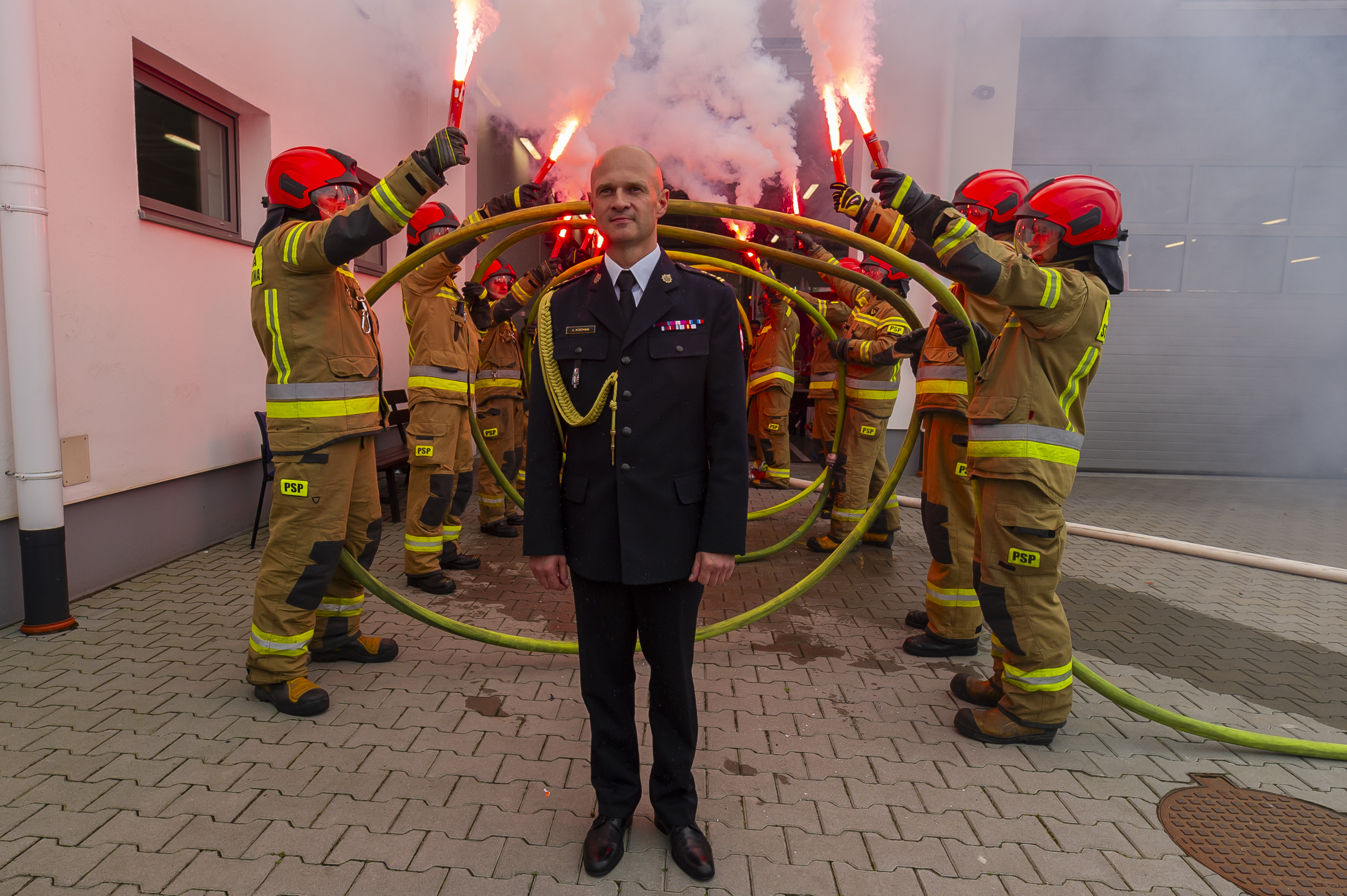„To dla mnie szczególny dzień. Dzisiaj jest 31 sierpnia i to nie jest przypadkowa data, która została przeze mnie wybrana na dzień zwolnienia ze służby, bo to Dzień Wolności i Solidarności” – wyjaśnił bryg. Łukasz Kochan.– „Przez te 20 lat służby zawodowej i ponad 20 w OSP spotkałem na swojej drodze wielu życzliwych mi ludzi i ta życzliwość pozwoliła mi trwać w tej służbie, stać na straży bezpieczeństwa mieszkańców i czerpać z tego duża satysfakcję. Przez te 20 lat starałem się budować relacje, w pierwszej kolejności ze strażakami i myślę, że są one bardzo dobre” – mówił bryg. Kochan.