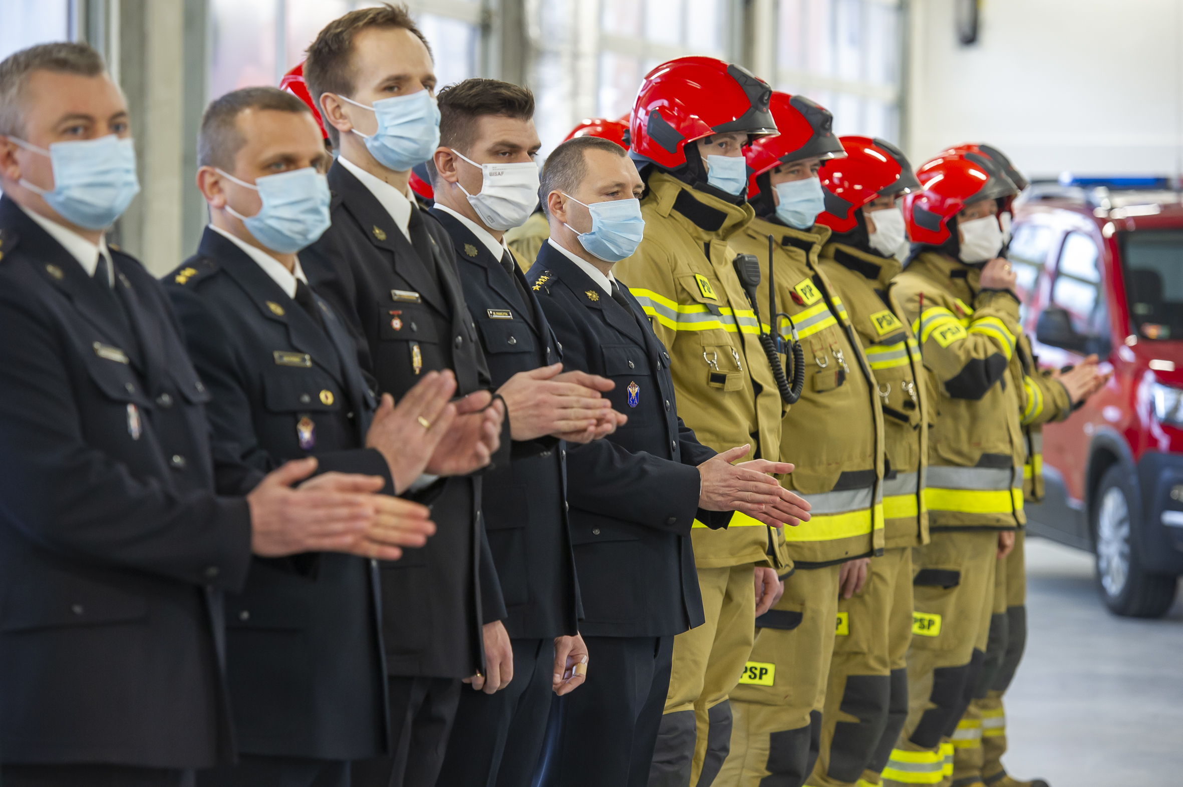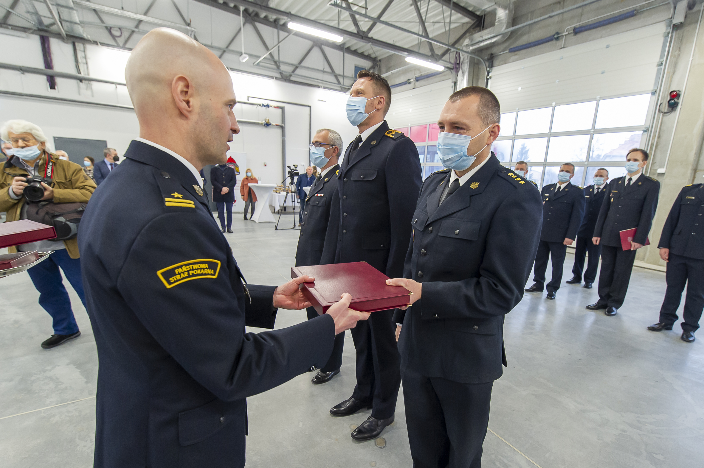 Uroczysta zbiórka była także doskonałą okazją do wręczenia honorowej odznaki Ministra Zdrowia Za zasługi dla ochrony zdrowia ogn. Michałowi Pawlycie z JRG nr 2 w Elblągu, była także doskonałą okazją do pożegnania funkcjonariuszy, którzy z dniem 31 stycznia 2022 roku, po wieloletniej służbie przeszli na zasłużone zaopatrzenie emerytalne.