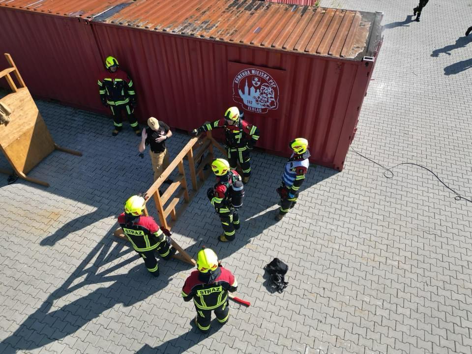 3. Gaszenie pożarów wewnętrznych połączone przedstawieniem technik poruszania się ratowników w ciasnych przestrzeniach oraz elementami wykonywania siłowego dostępu do pomieszczeń. Pierwszą częścią założenia było przedstawienie ochotnikom podstawowych technik pokonywania trudnodostępnych przestrzeni z jakimi mogą się spotkać przebywając w zadymionym pomieszczeniu. W kolejnym etapie każdy z zastępów miał za zadanie dokonać siłowego otwarcia drzwi i przeprowadzić działania polegające na dotarciu do źródła pożaru w zadymieniu, ugaszeniu pożaru i ewakuacji osoby poszkodowanej.