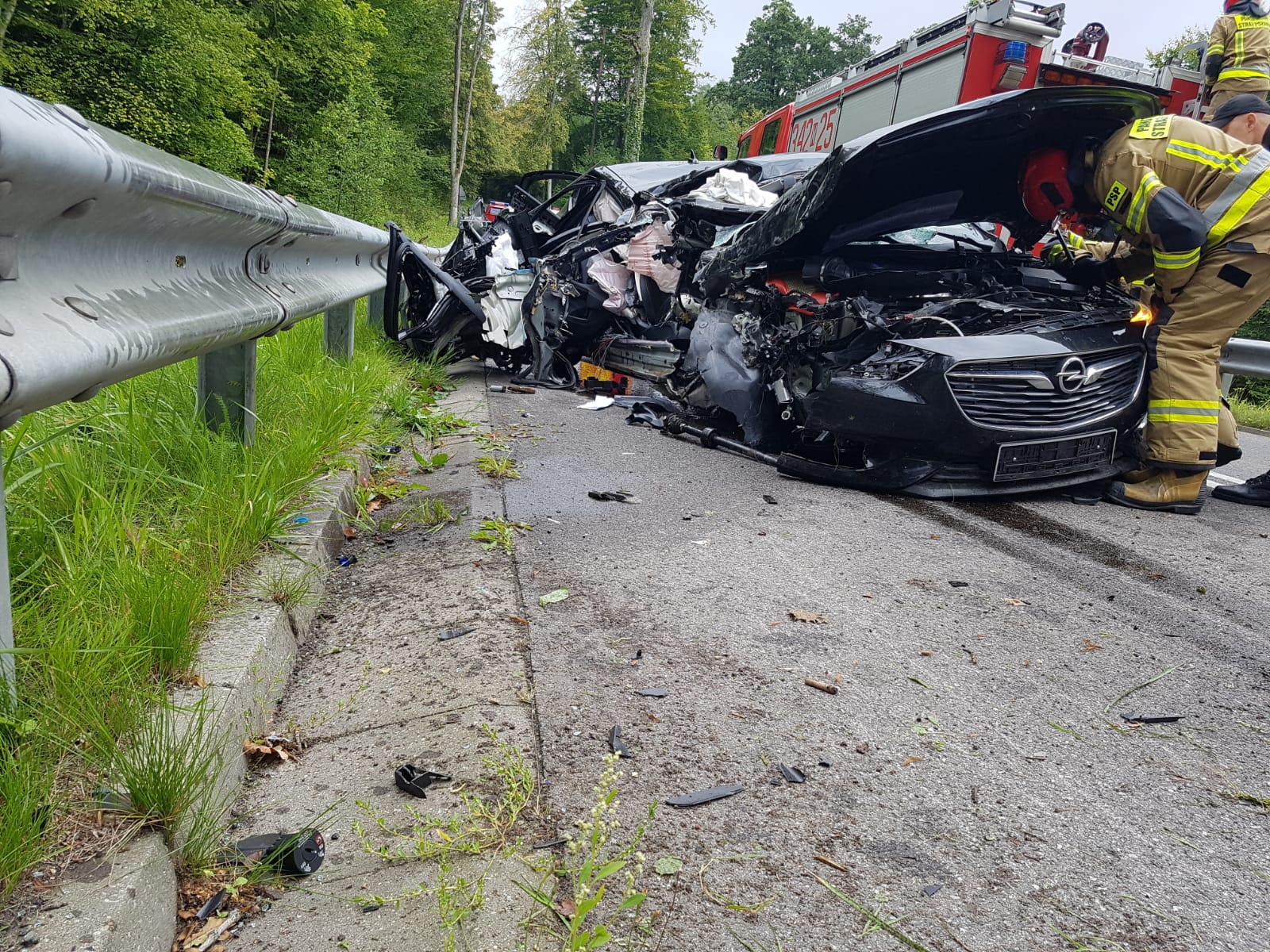Do zdarzenia zostali skierowani strażacy z JRG nr 2 w Elblągu. Działania straży w pierwszej kolejności polegały na zabezpieczeniu miejsca zdarzenia oraz udzieleniu kwalifikowanej pierwszej pomocy poszkodowanemu mężczyźnie do czasu przyjazdu zespołu ratownictwa medycznego. Następnie uprzątnięto jezdnię z pozostałości pokolizyjnych. Na czas prowadzonych działań ratowniczych droga była całkowicie zablokowana. Kierujący pojazdem został zabrany przez medyków do szpitala na dalsze badania.