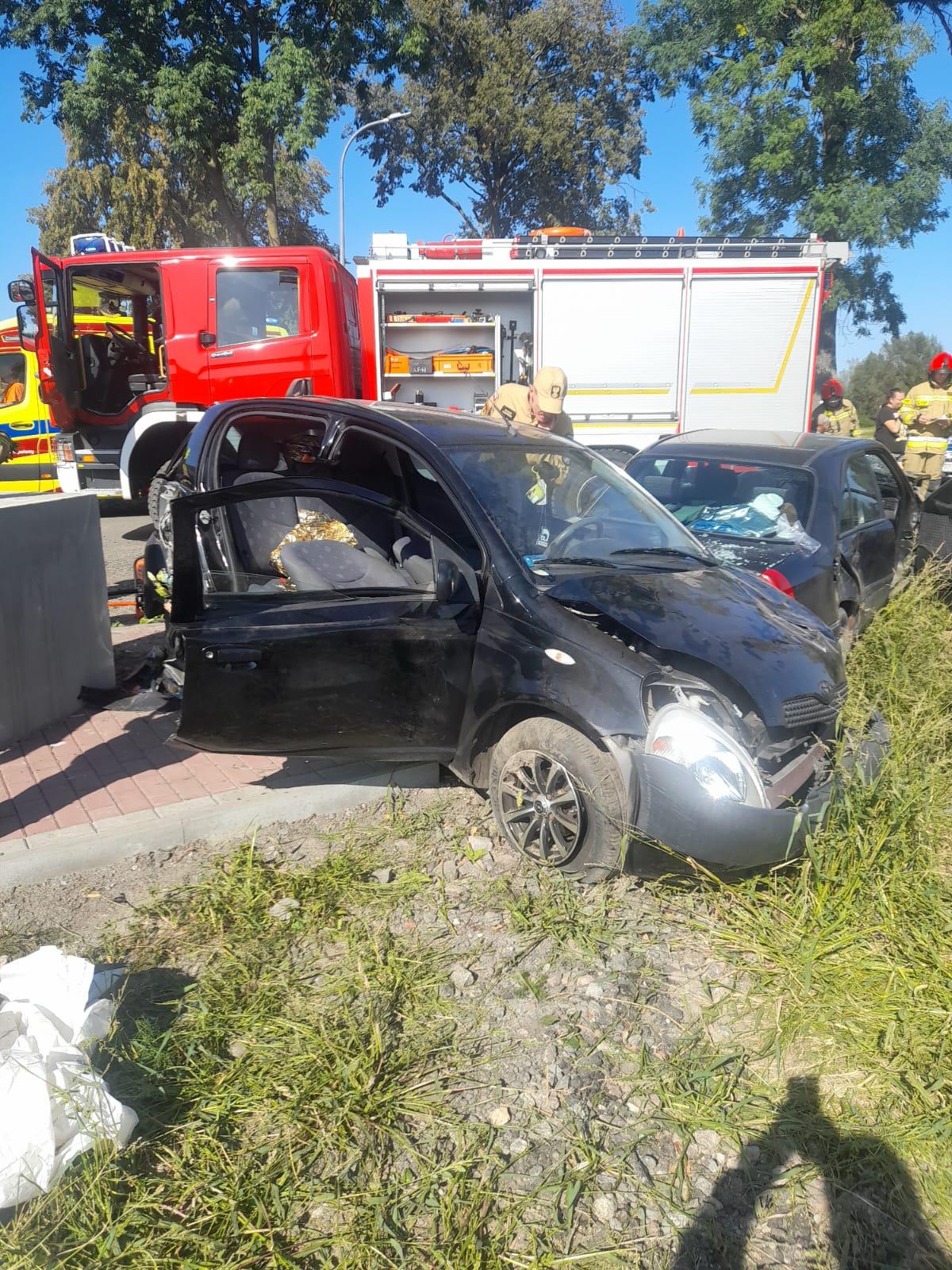 Po przybyciu na miejsce zdarzenia zastępów PSP stwierdzono, że doszło do zderzenia dwóch samochodów osobowych – Toyoty Yaris oraz Mercedesa C180. Pojazdami podróżowały łącznie cztery osoby z czego dwie z uwagi na zniszczenia w pojeździe oraz dolegliwości związane z wypadkiem nie były