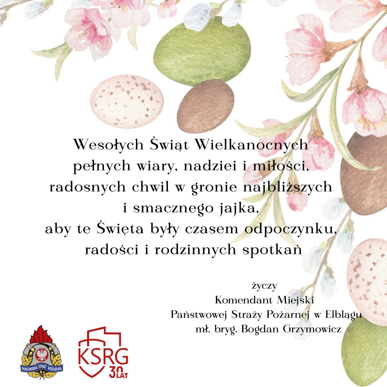 Życzenia Wielkanocne Komendanta Miejskiego Państwowej Straży Pożarnej w Elblągu 18.04.2025 Zdjęcia (1) Pokaż zdjęcie 1 z galerii.