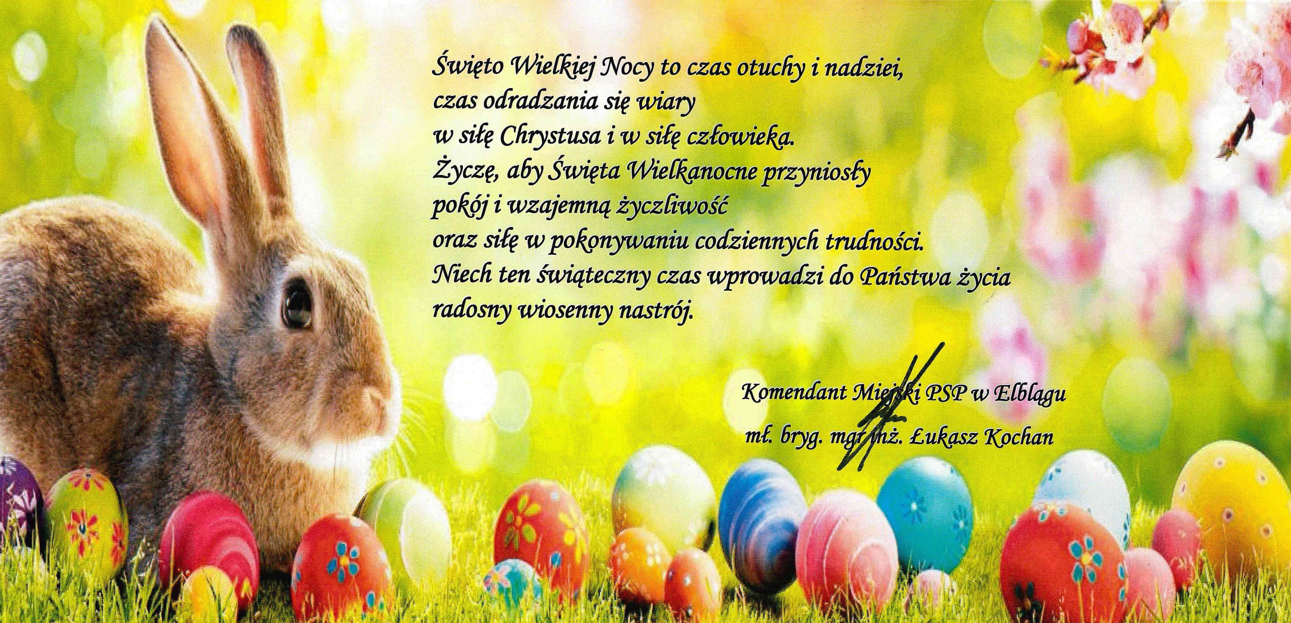 Życzenia Wielkanocne Komendanta Miejskiego PSP w Elblągu 15.04.2022 Zdjęcia (1) Pokaż zdjęcie 1 z galerii.