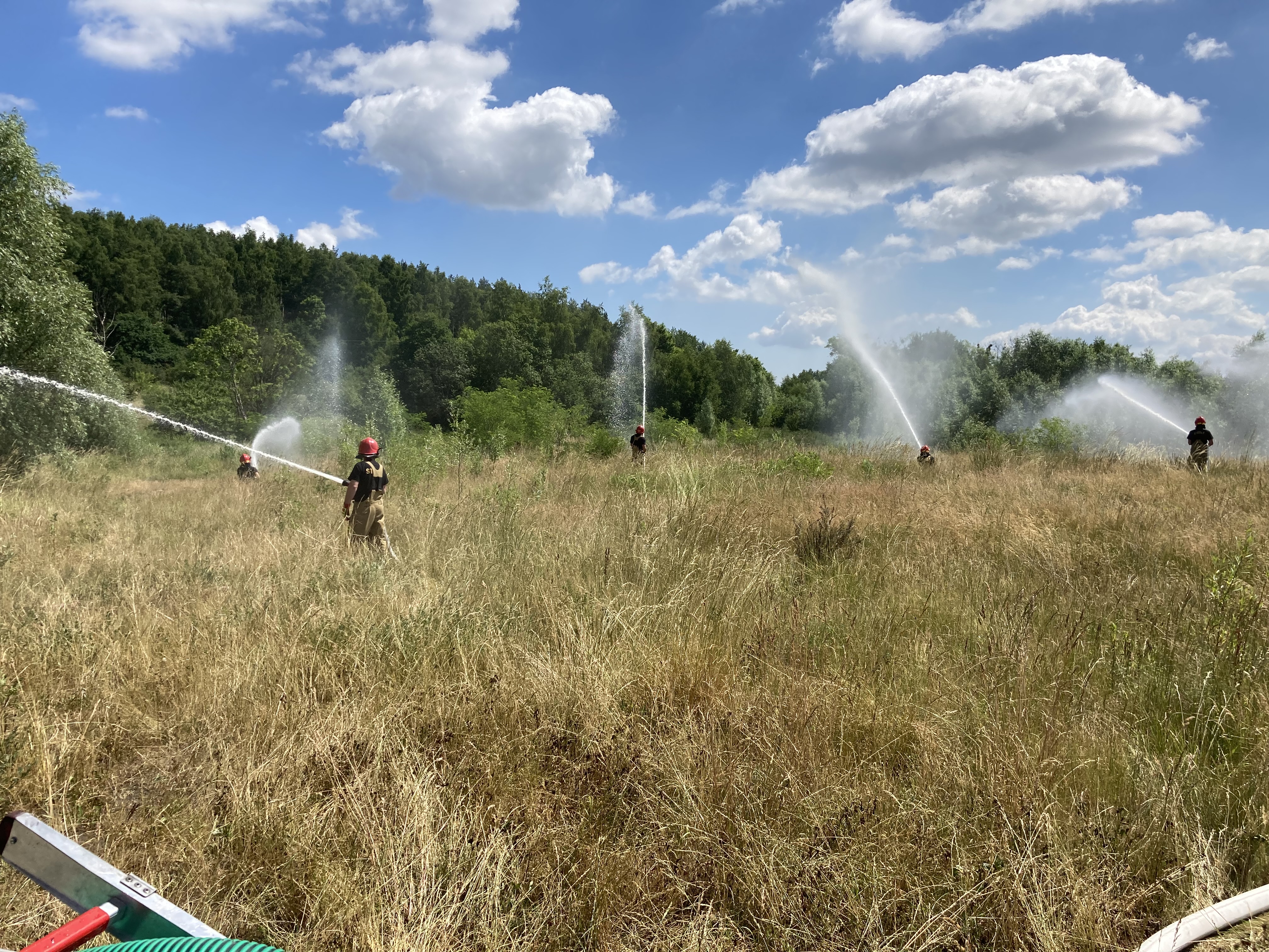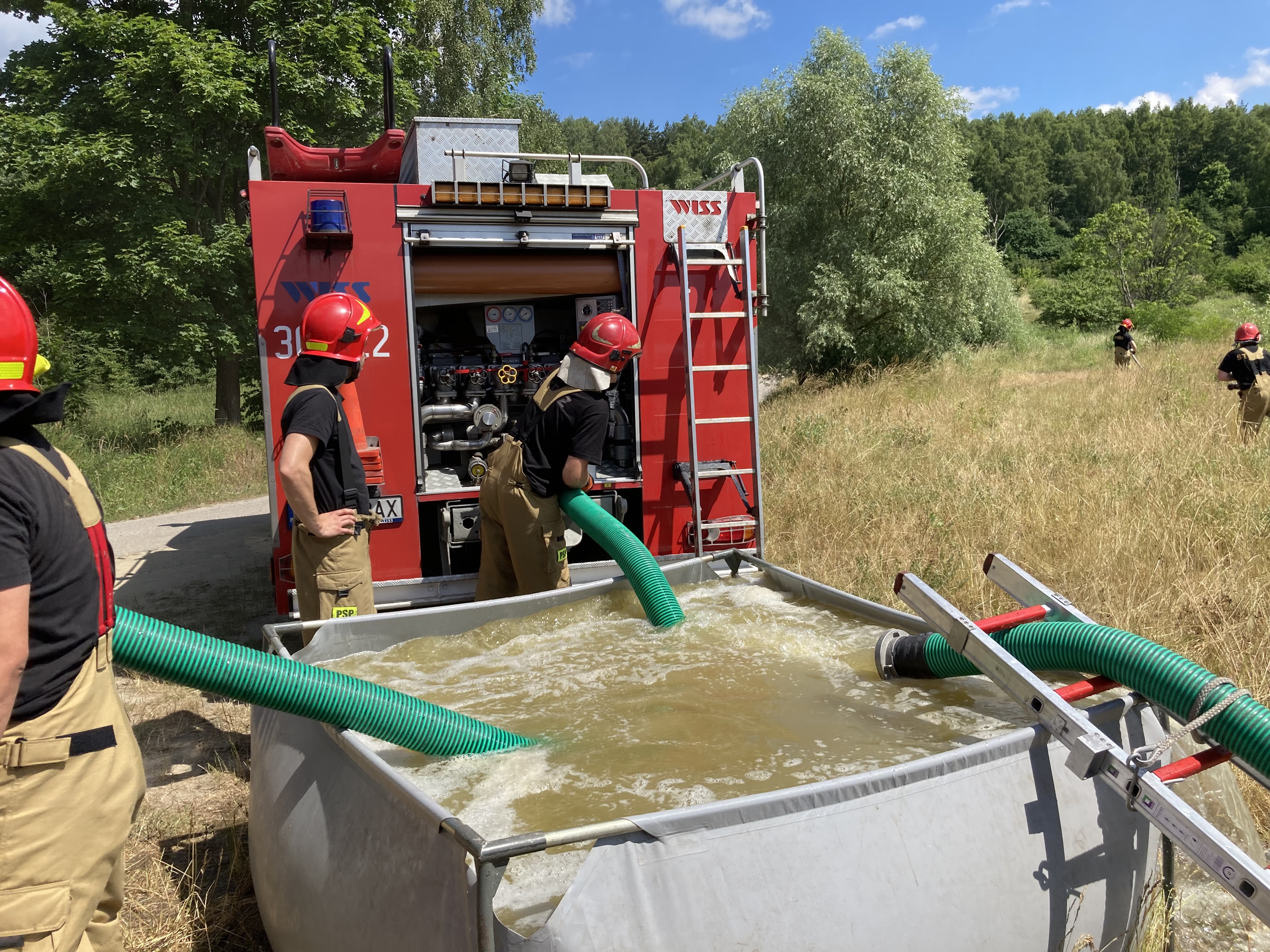 28 czerwca 2021 r. zastępy JRG 1, JRG 3, JRG 5 oraz Posterunku JRG 2 uczestniczyły w ćwiczeniach doskonalących techniki przetłaczania wody na dalekie odległości. Pozwoliły one na sprawdzenie w warunkach praktycznych możliwości prowadzenia działań podczas pożarów rozległych obszarów leśnych w odaleniu od miejskich magistrali wodociągowych z wykorzystaniem m.in. zbiorników retencyjnych.
