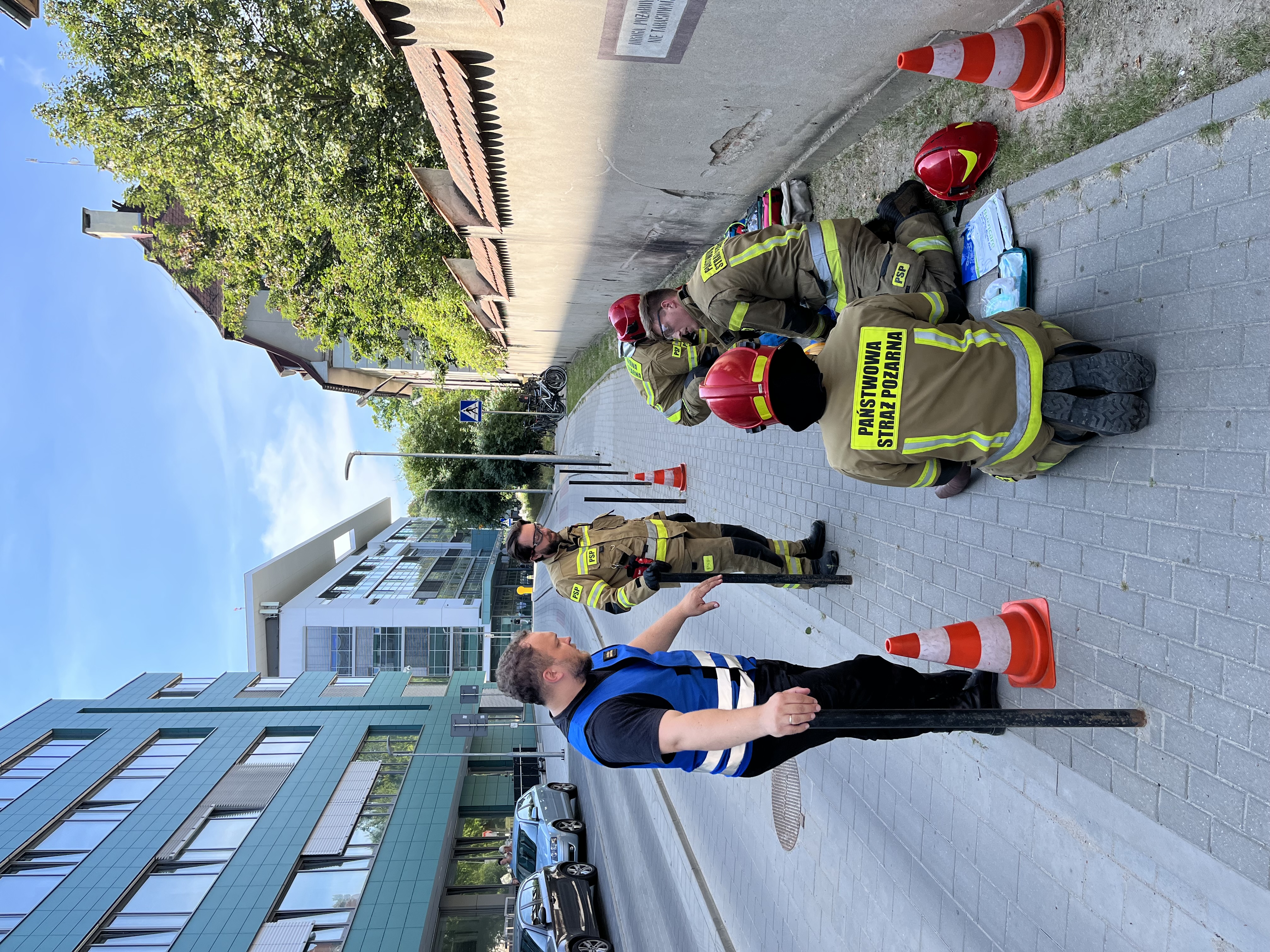 Założony scenariusz przewidywał powstanie pożaru w piwnicy budynku wielokondygnacyjnego na skutek prowadzenia prac remontowo - budowlanych. Brygadzista ekipy remontowej ewakuował się na zewnątrz informując, że nie ma kontaktu z 3 osobami. W obiekcie występuje bardzo silne zadymienie.
