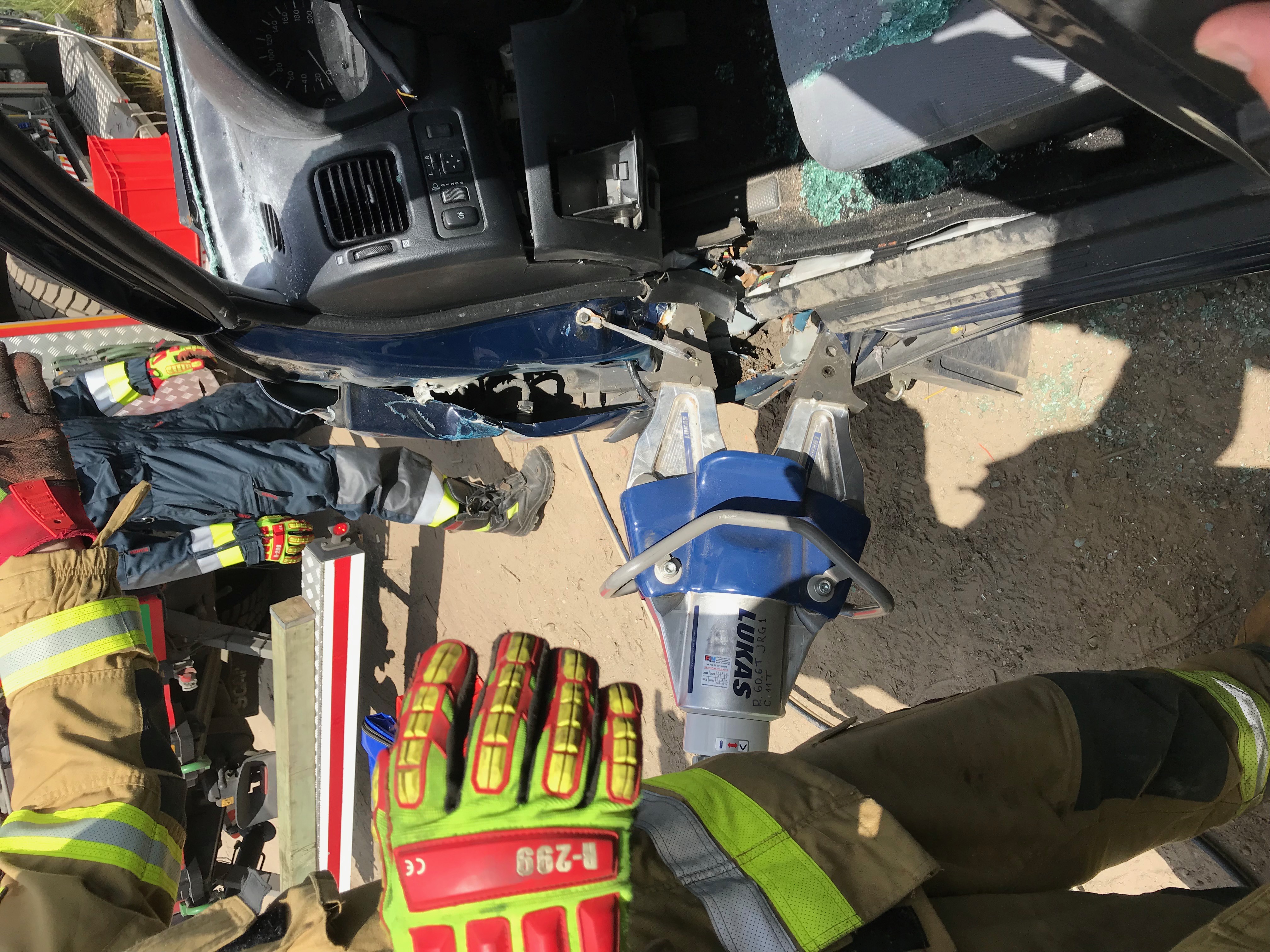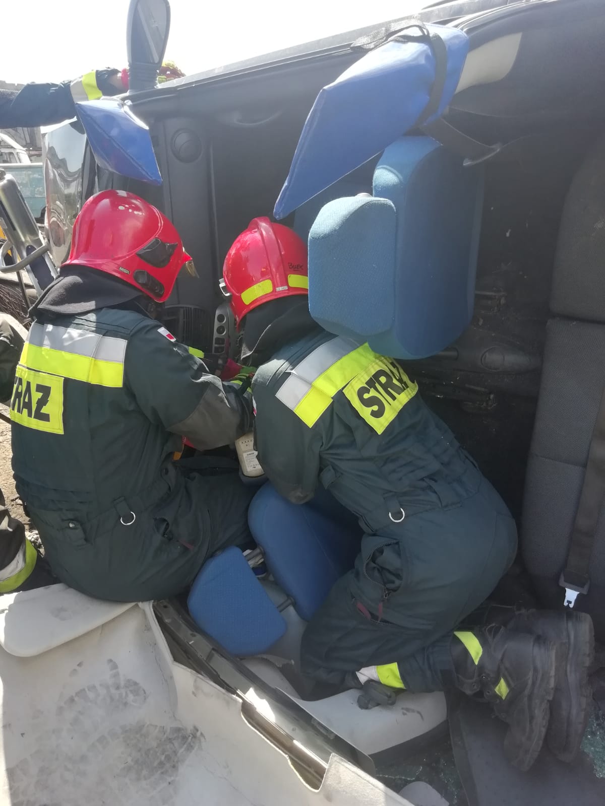 i odpychanie deski rozdzielczej, usuwanie części karoserii samochodowej za pomocą sprzętu będącego na wyposażeniu JRG, - przypomnienie metod ewakuacji osób poszkodowanych z pojazdów drogowych.