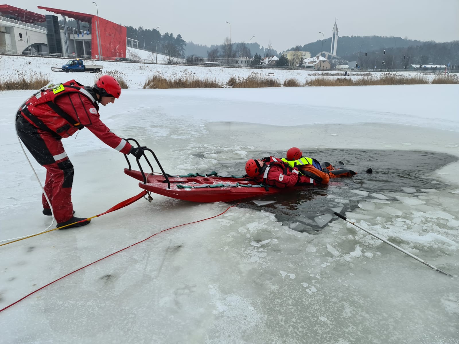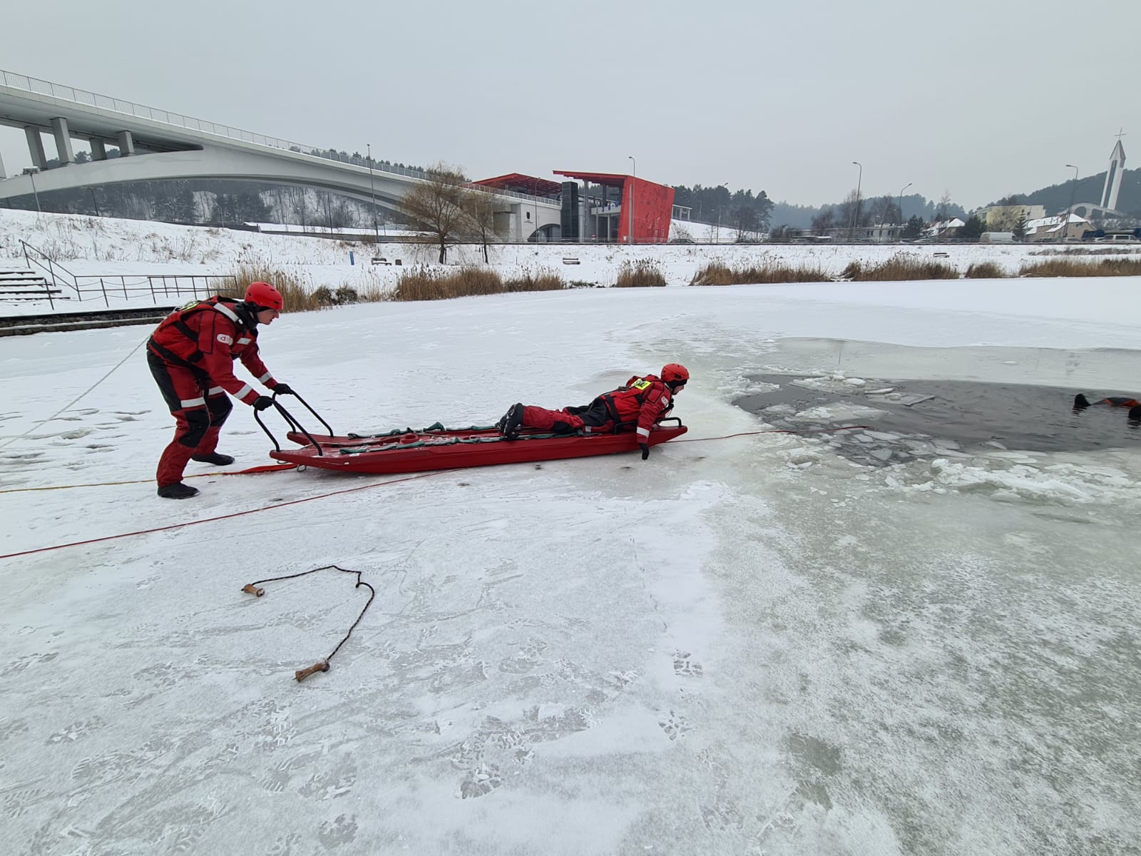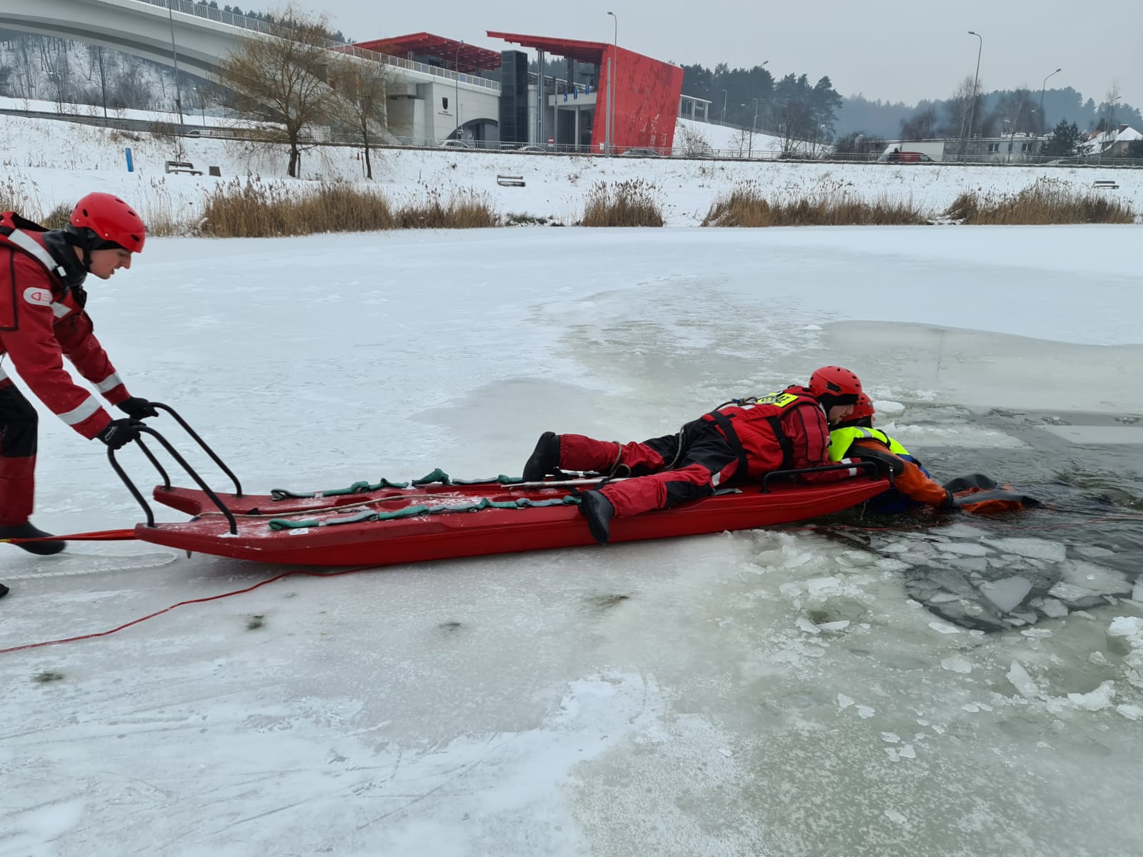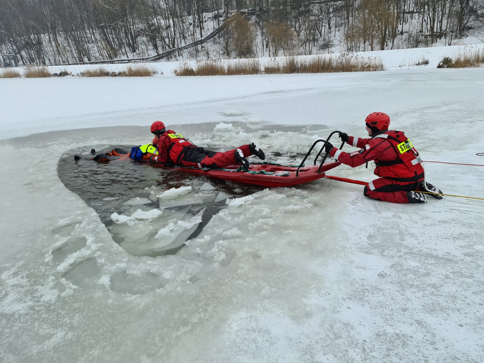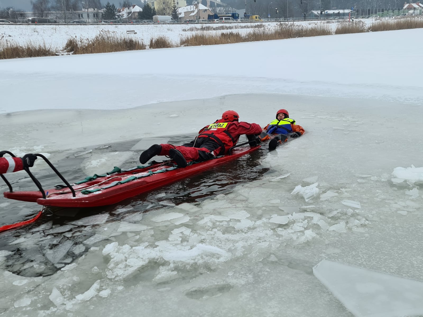 Ćwiczenia z ratownictwa lodowego Jednostki Ratowniczo-Gaśniczej nr 1 w Gdańsku-Wrzeszczu