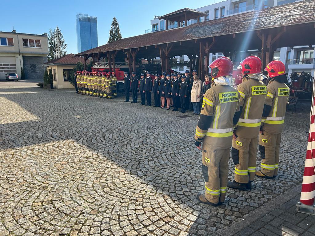 Kadra kierownicza Komendy Miejskiej PSP w Gdańsku uczestniczyła w uroczystości na placu przy budynku komendy wojewódzkiej PSP w Gdańsku wspólnie z funckjonariuszami KW PSP na czele z pomorskim komendantem wojewódzkim st. bryg. Piotrem Sochą.
