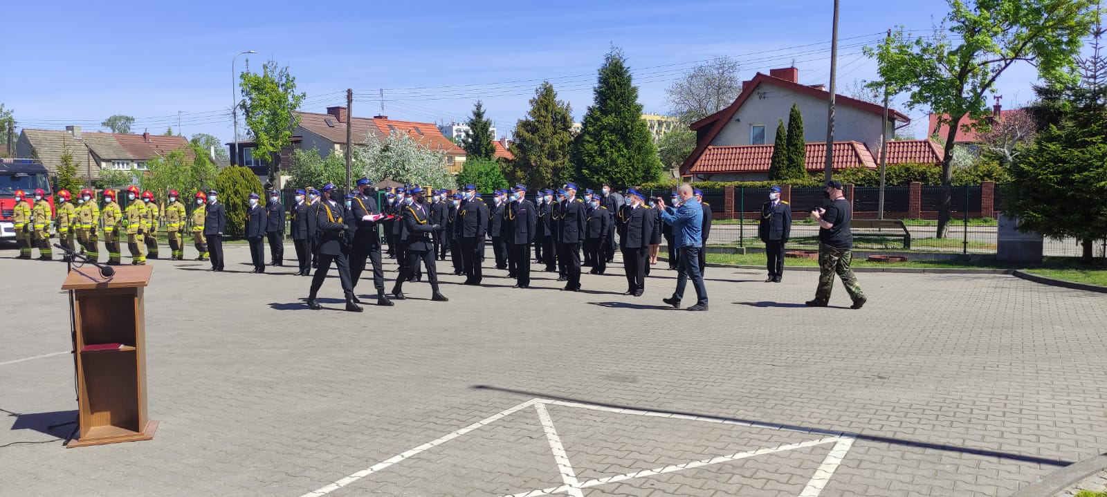 Przeglądu pododdziałów i pocztu sztandarowego dokonał st. bryg. Dariusz Żywicki Zastępca Pomorskiego Komendanta Wojewódzkiego Państwowej Straży Pożarnej.