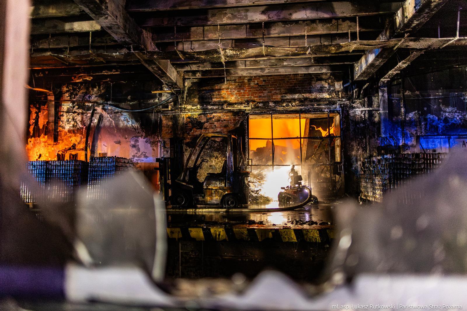 Po przybyciu na miejsce zdarzenia pierwszych zastępów, zaobserwowano silne zadymienie, które wydobywało się z wnętrza hali. Ze względu na szybki rozwój pożaru, dowódca akcji zgłosił zapotrzebowanie na kolejne siły i środki, które dysponowano również z powiatów ościennych.