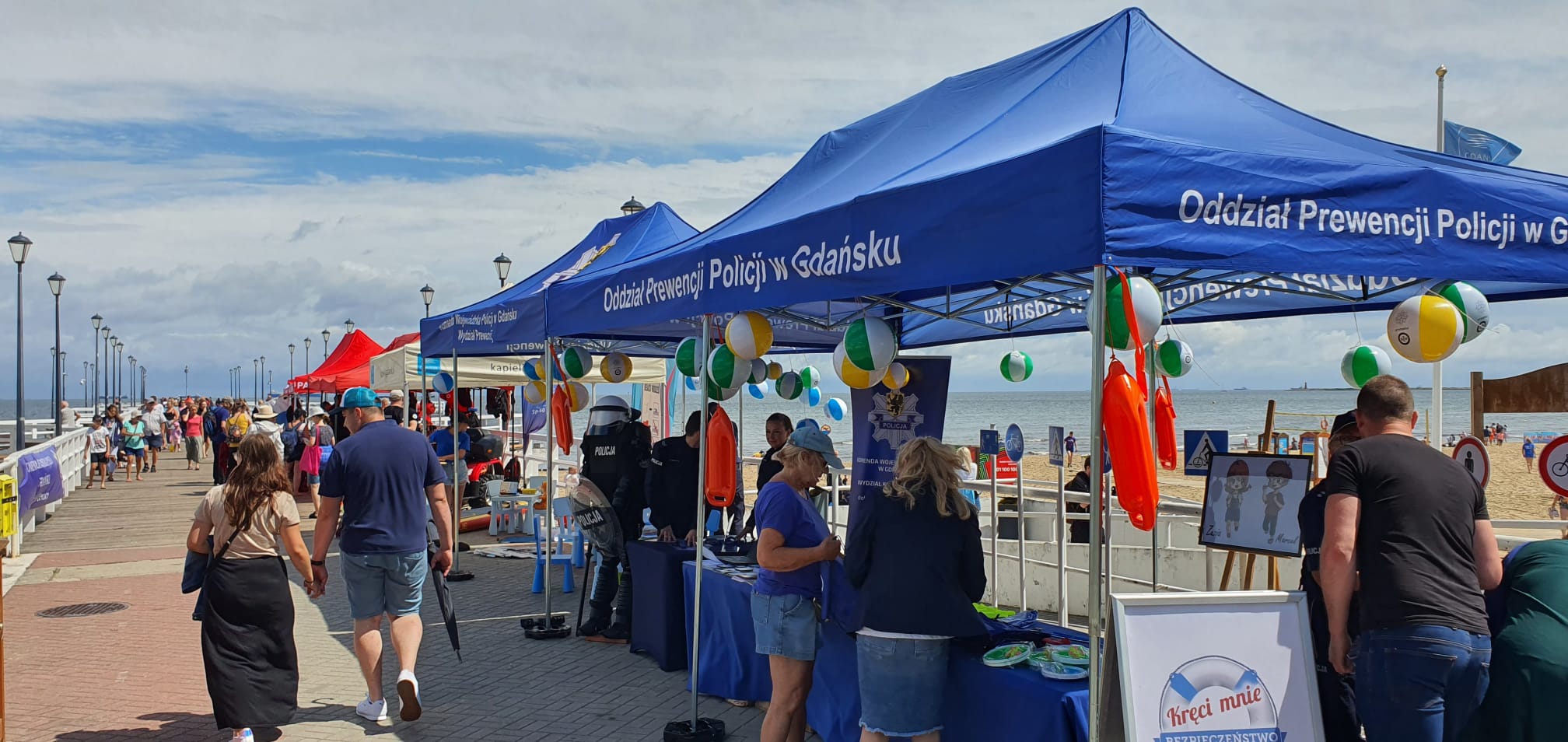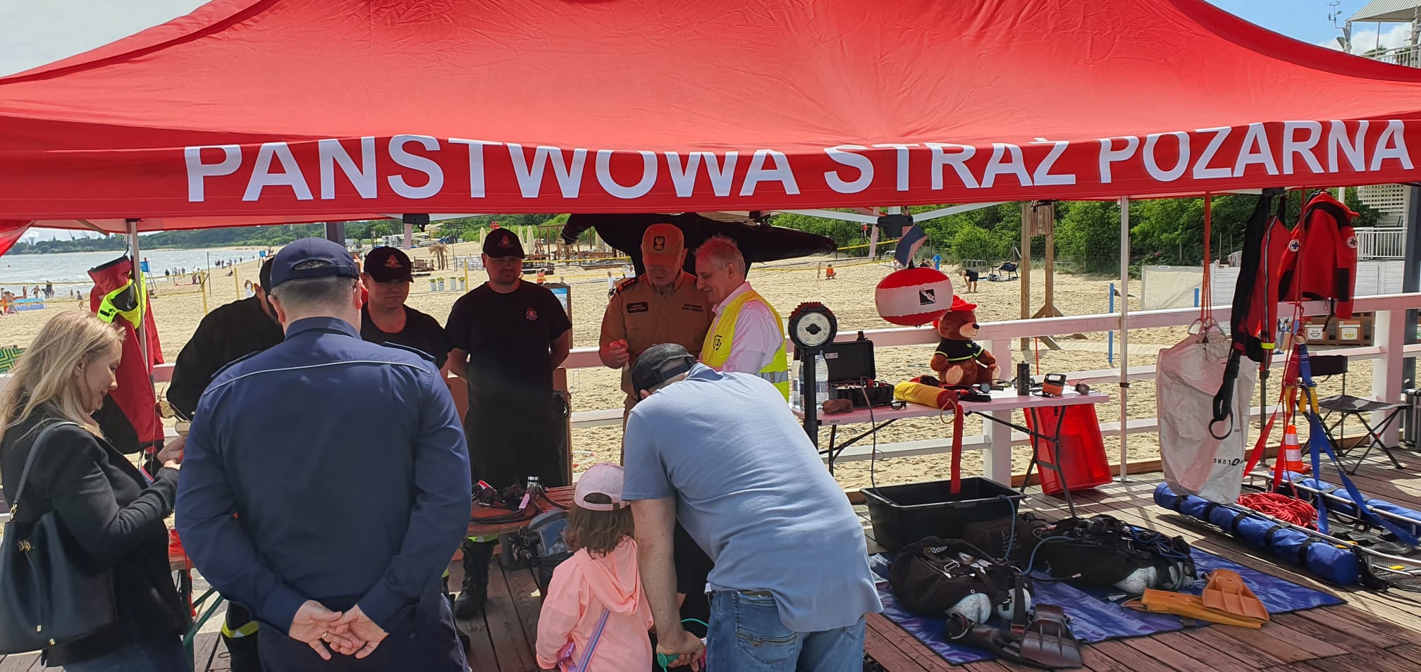 Na plaży przy molo w Gdańsku – Brzeźnie w dniu 2 lipca br. strażacy z Jednostki Ratowniczo-Gaśniczej nr 2 wraz z Pomorską Policją wzięli udział w festynie pn. „Bezpieczne wakacje 2022” w ramach akcji „Kręci mnie bezpieczeństwo nad wodą”