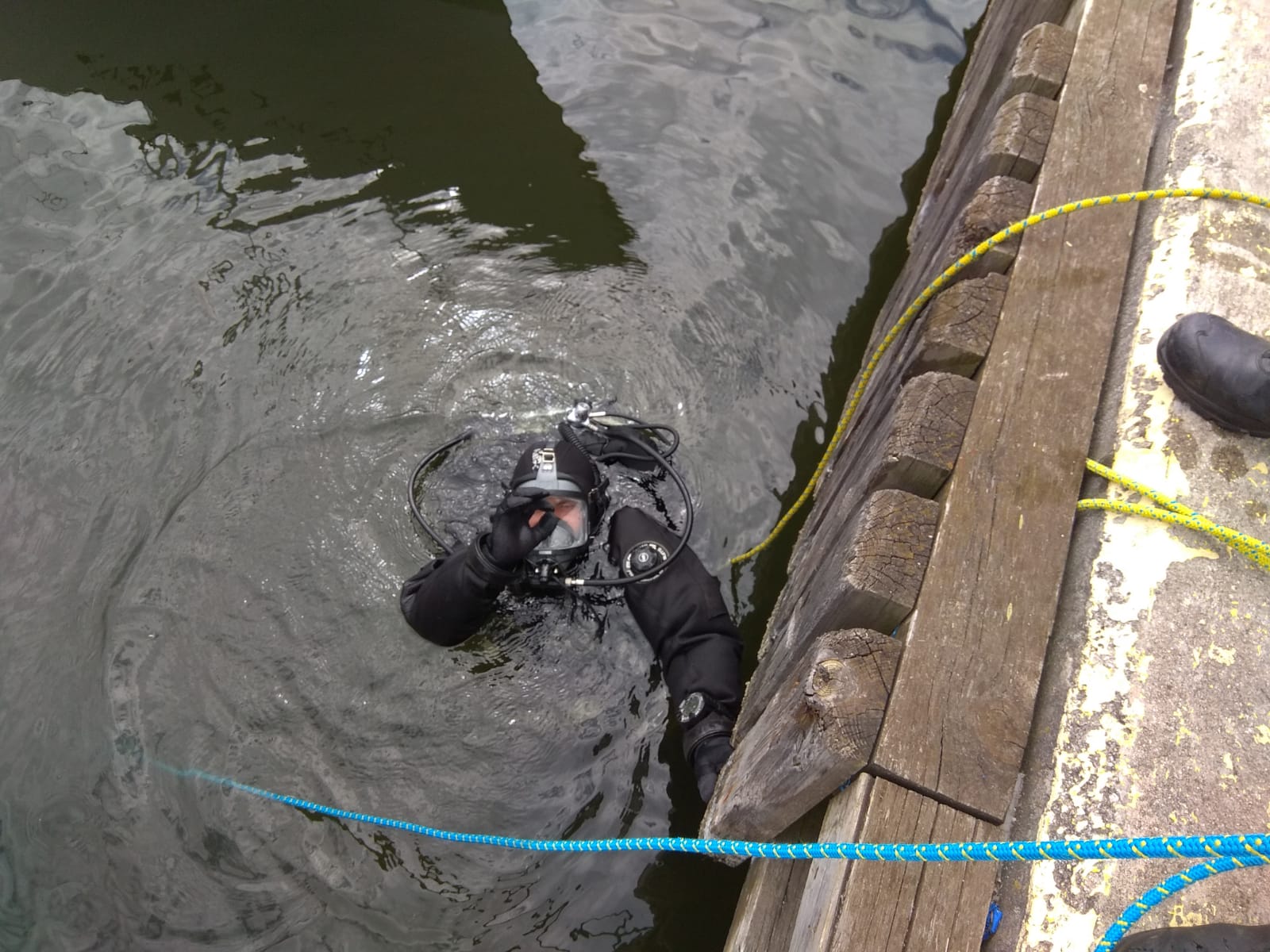 Nurkowie po przybyciu na miejsce zdarzenia niezwłocznie przystąpili do poszukiwań mężczyzny w wodzie, w miejscu wskazanym przez świadków zdarzenia. Dynamiczna akcja płetwonurka, który poszukiwania prowadził w obrębie zacumowanego statku doprowadziła do szybkiego odnalezienia mężczyzny na dnie kanału portowego. Poszkodowany został natychmiast ewakuowany na powierzchnię i wydobyty na brzeg. Na brzegu rozpoczęto reanimację poszkodowanego, którą kontynuowano do czasu przybycia zespołu Państwowego Ratownictwa Medycznego i przekazania poszkodowanego służbom medycznym.