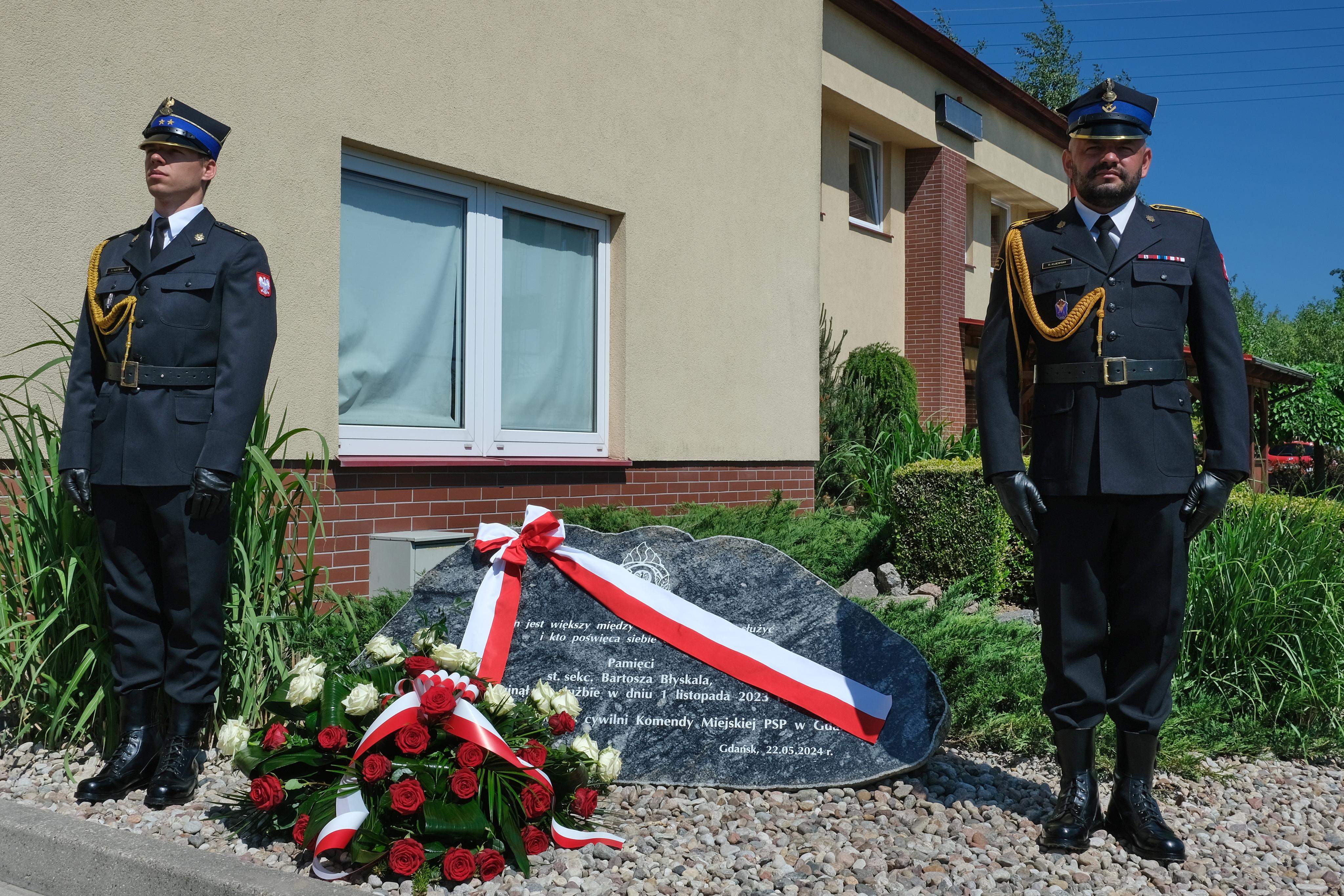 Uroczysty apel był również okazją do osłonięcia tablicy pamiątkowej poświęconej zmarłemu na służbie, ś.p. st. sekc. Bartoszowi Błyskal, którego dokonali rodzina i przyjaciele w asyście komendanta miejskiego Państwowej Straży Pożarnej w Gdańsku st. bryg. Romualda Pituły.