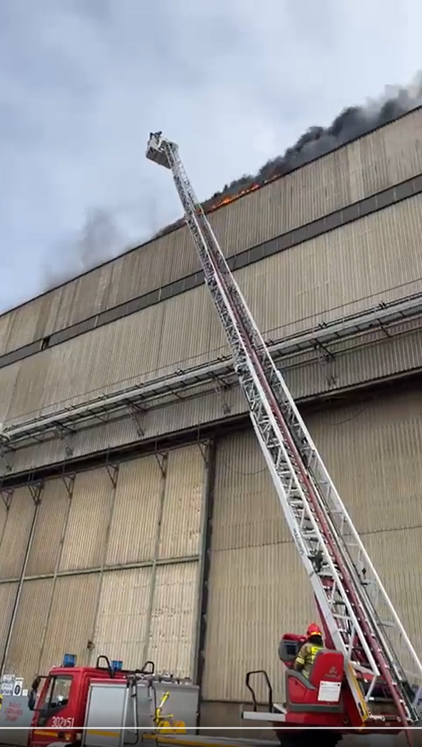 Pożar dachu hali produkcyjnej na terenie stoczni