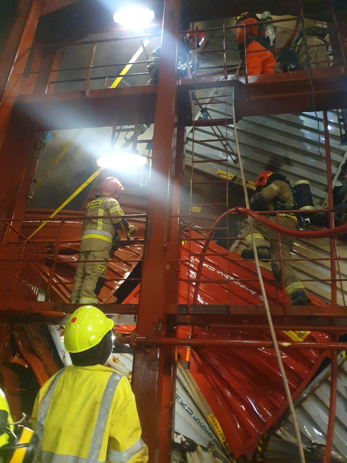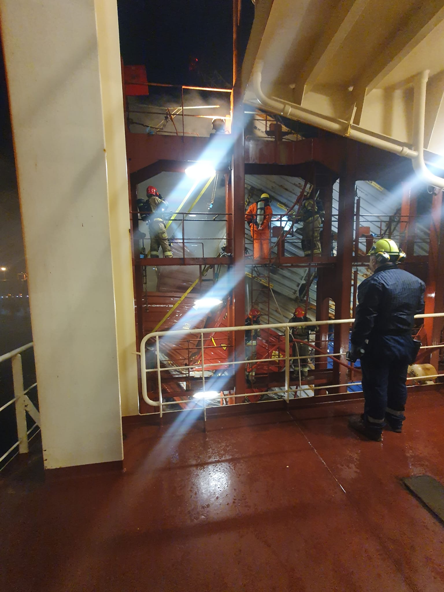 Działania ze względu na specyfikę obiektu oraz dodatkowe zagrożenia spowodowane przez przewrócone i uszkodzone kontenery na pokładzie kontenerowca, wymagały ogromnego wysiłku i skupienia ratowników. W akcji, która trwała prawie 8 godzin, łącznie udział wzięło 29 strażaków.