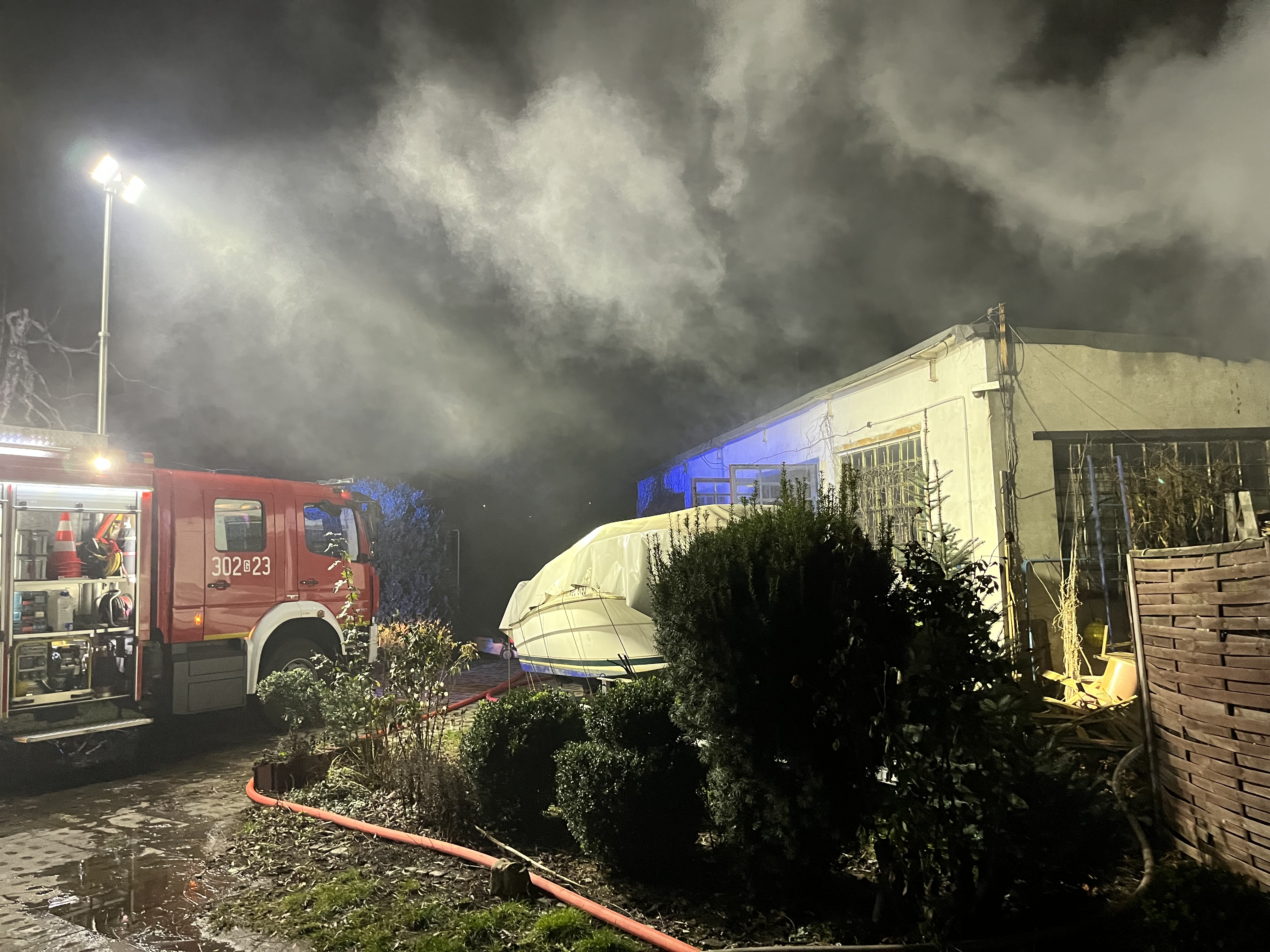 Dzięki szybkiej akcji, przerowadzonej głównie przez strażaków z JRG 2 tj. jednostki oddalonej o ok. 1 km od miejsca zdarzenia, udało się szybko zlokalizować pożar i nie dopuścić do jego przeniesienia na pobliski garaż dla łodzi ratowniczych, a przede wszystkim na przyległy budynek mieszkalno-biurowy. Niewielkiemu uszkodzeniu w wyniku działania ognia uległa łódź garażowana na sąsiedniej działce.