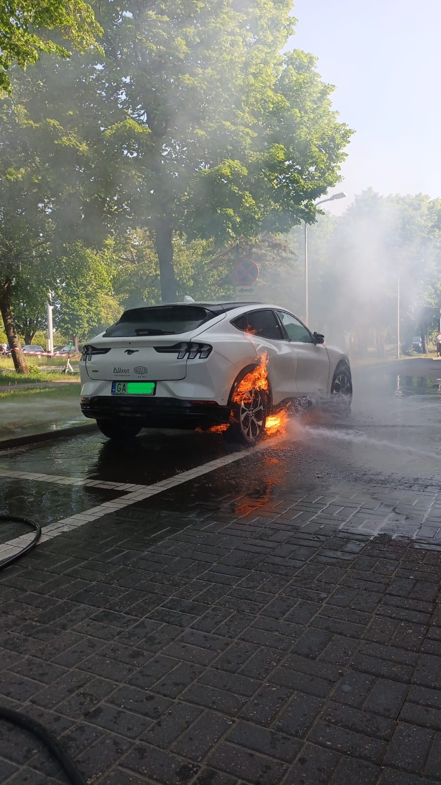 28 maja 2023 r. po godzinie 16 na Stanowisko Kierowania Komendanta Miejskiego PSP w Gdańsku otrzymaliśmy zgłoszenie o pożarze samochodu elektrycznego Ford Mustang Mach-E 4x. Pojazd zaparkowany był na stacji paliw na al. Hallera.