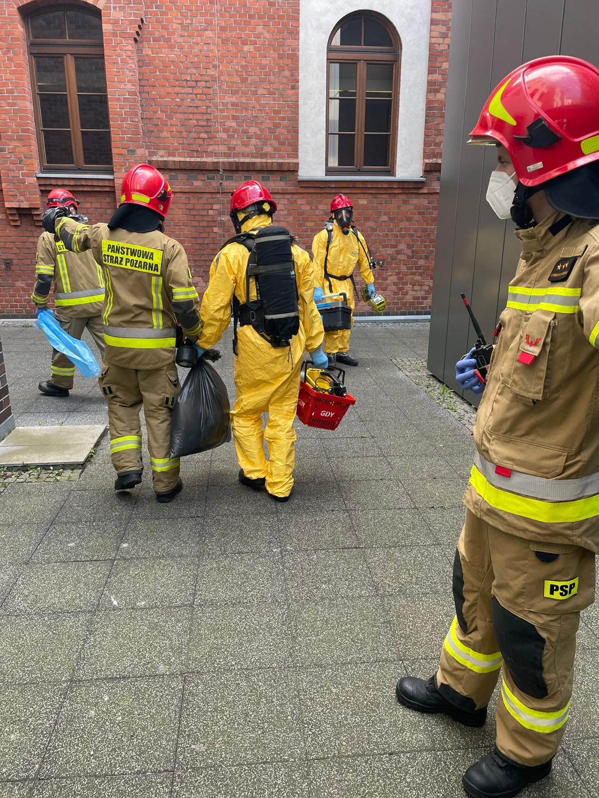 Na miejsce zadysponowano zastęp z JRG 2, Oficera Operacyjnego Komendy Miejskiej w Gdańsku oraz Specjalistyczną Grupę Ratownictwa Chemiczno-Ekologicznego z KM PSP Gdynia. W trakcie działań dokonano analizy zawartości paczki oraz monitorowano strefę niebezpieczną.