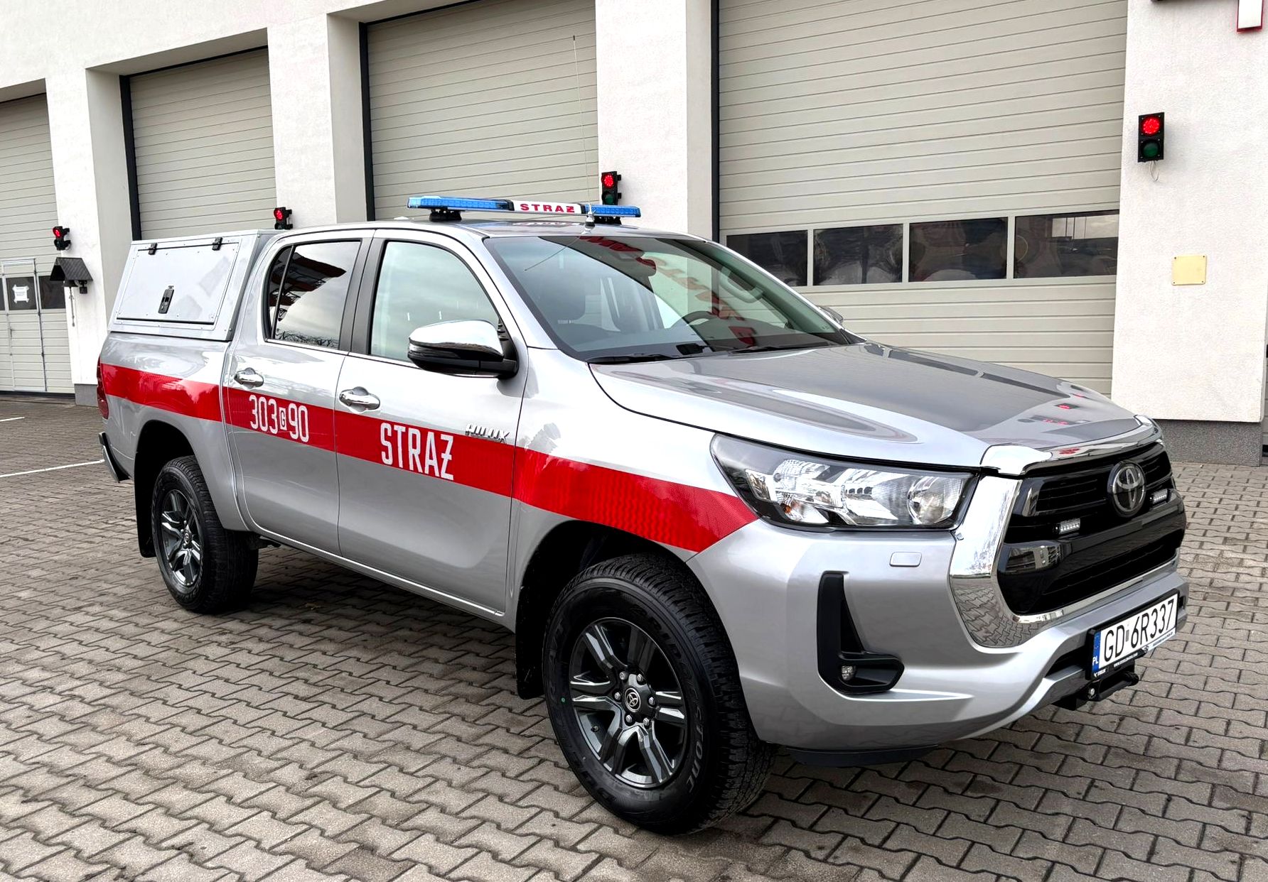 W ramach zadania inwestycyjnego pn. Doposażenie KM PSP w Gdańsku w lekki samochód rozpoznawczo – ratowniczy typu „pickup” z napędem terenowymi i podpisanej umowy nr WFOŚ/D/I-1/9475/2024 z Wojewódzkim Funduszem Ochrony Środowiska i Gospodarki Wodnej w Gdańsku zakupiono samochód marki Toyota Hilux.