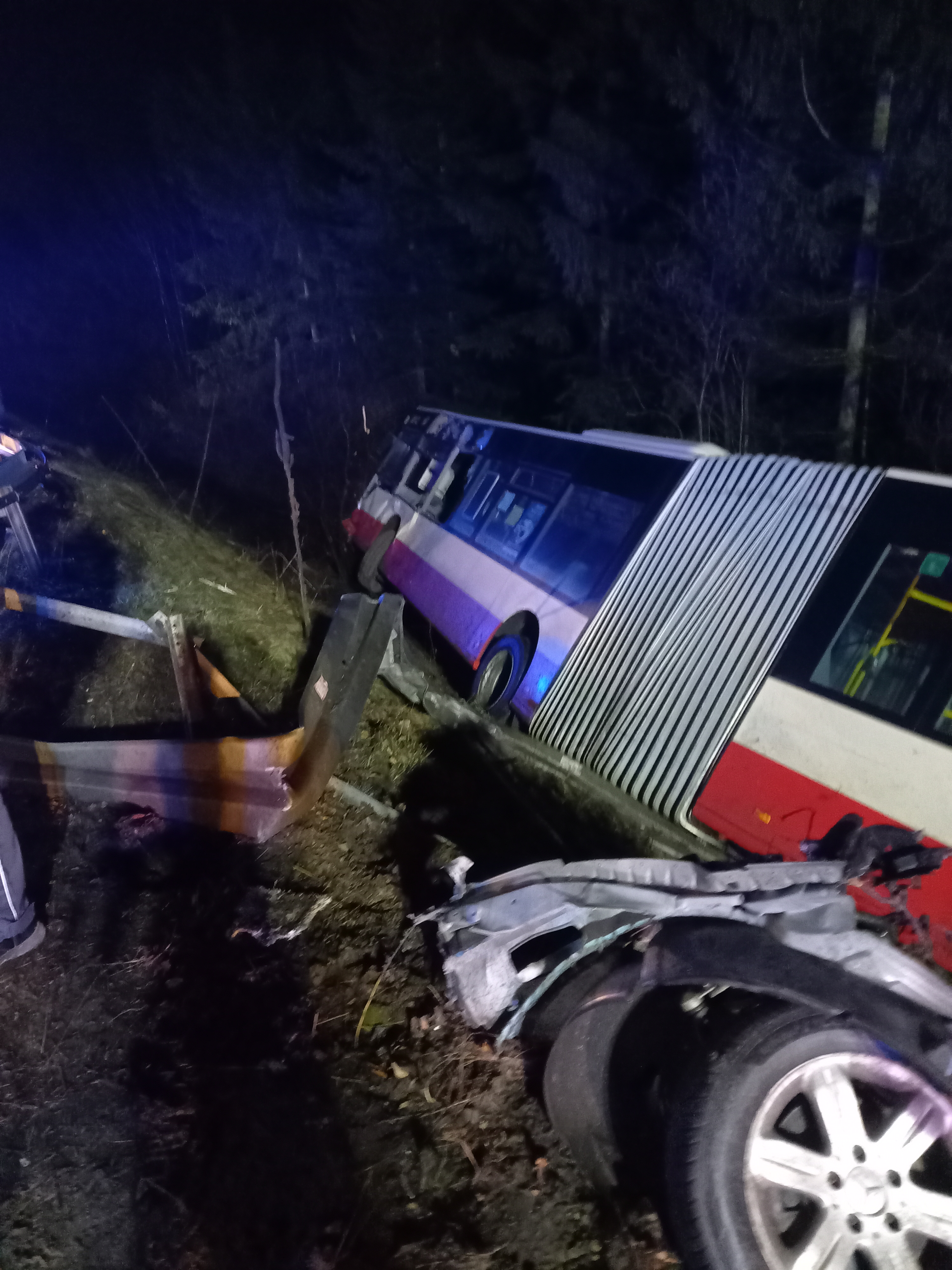Równocześnie podczas działań ratowniczych potwierdzono brak kolejnych osób poszkodowanych oraz skoncentrowano się na wydobyciu uszkodzonego autobusu komunikacji miejskiej z rowu i w celu umożliwienia czynności dochodzeniowych Policji i udrożnieniu zablokowanej drogi.