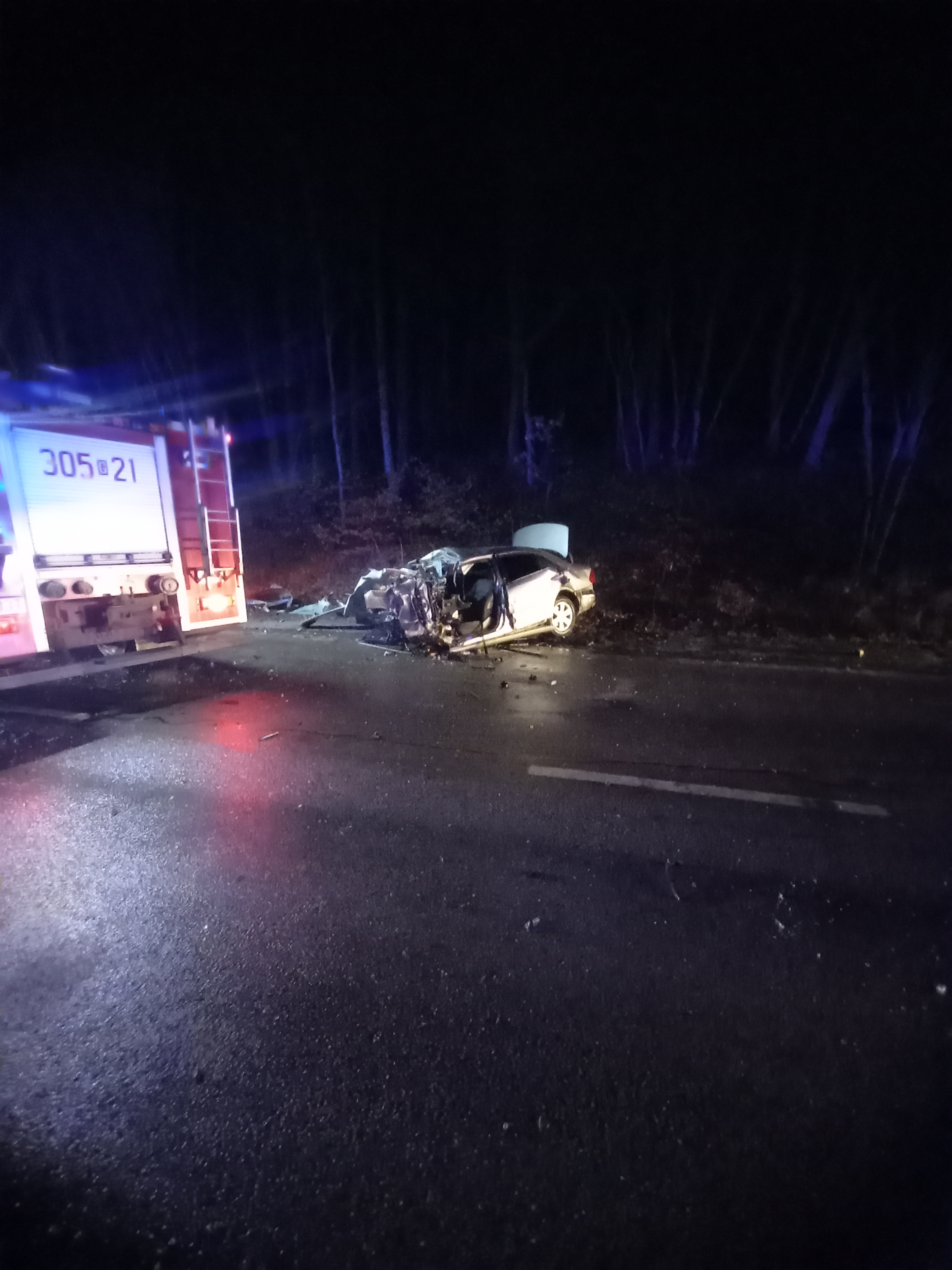 W chwili dotarcia na miejsce działań stwierdzono, że w samochodzie osobowym zakleszczone są dwie osoby. Kierowca autobusu oraz pasażerowie wydostali się z pojazdu o własnych siłach.