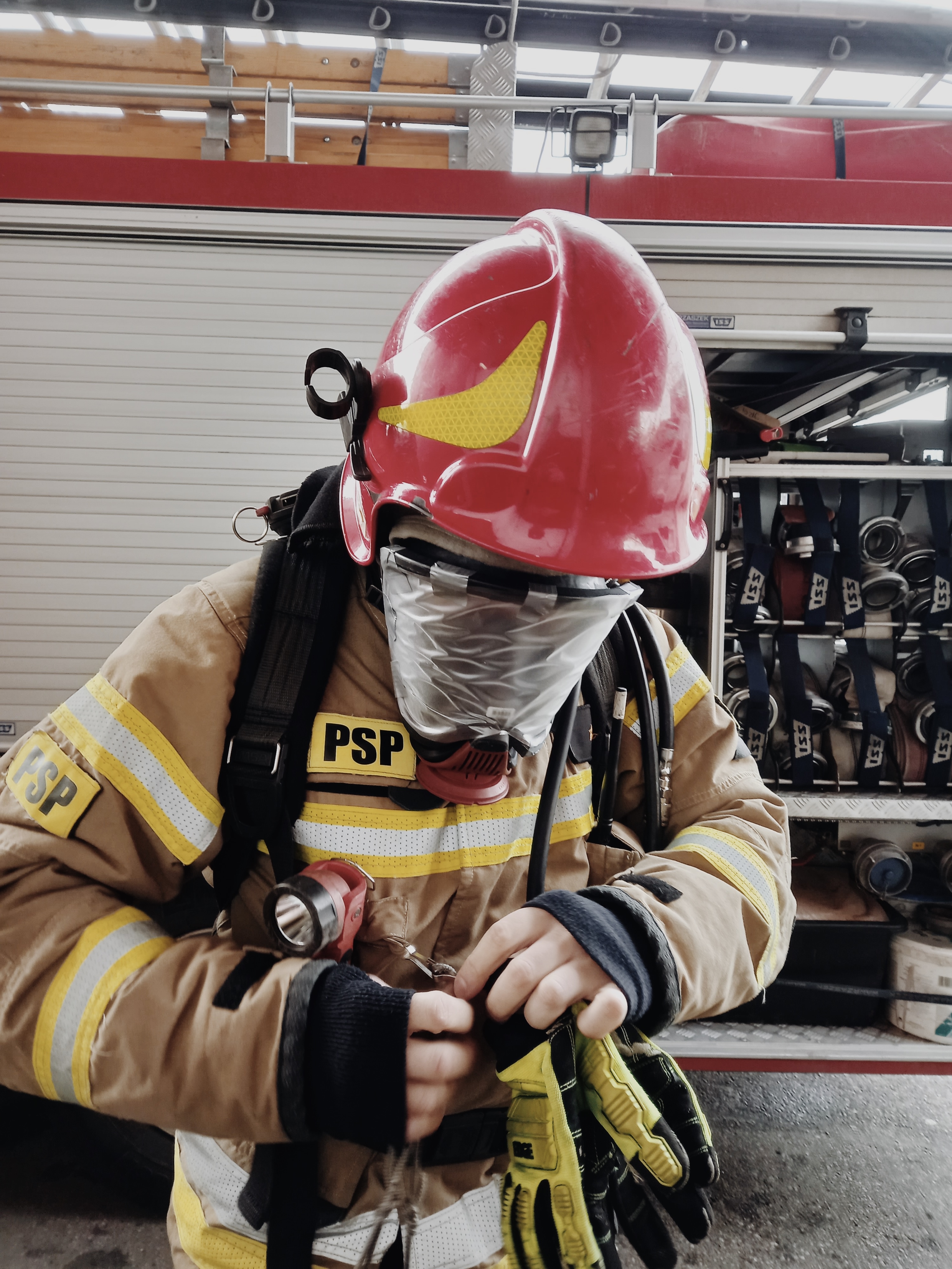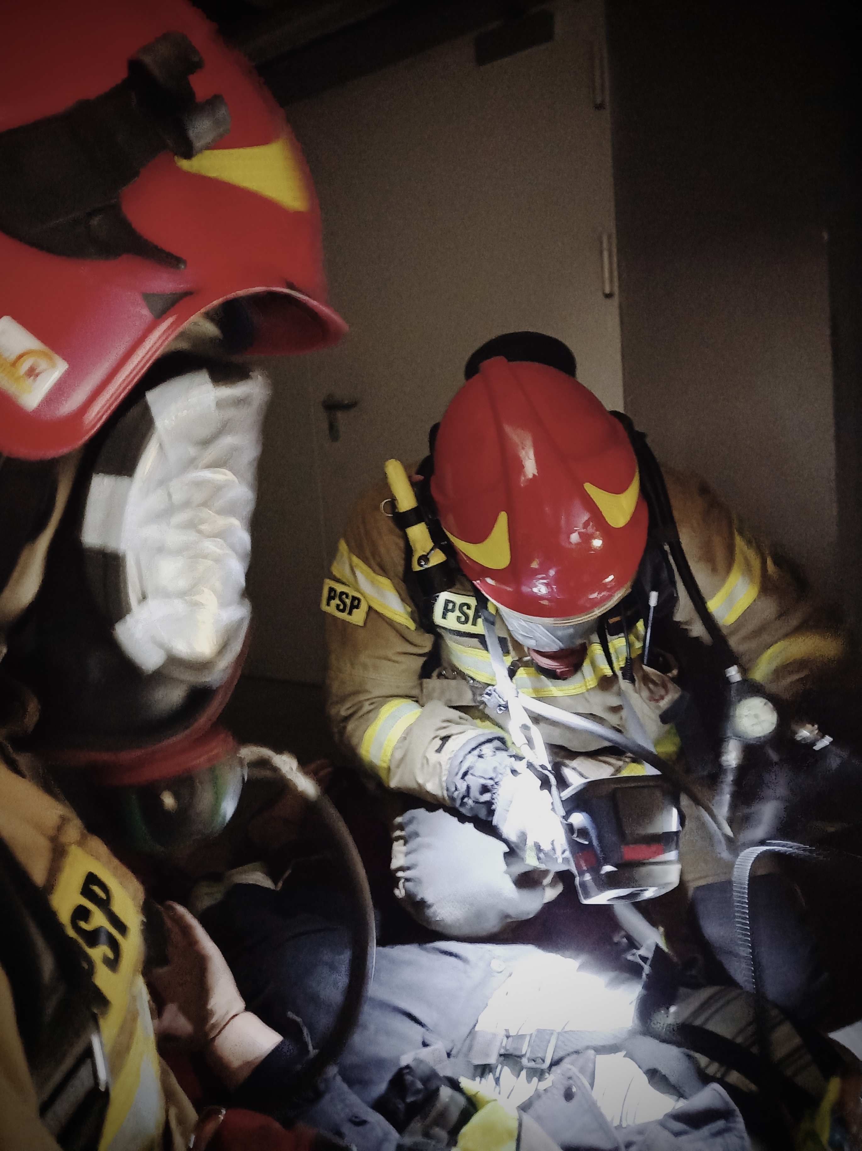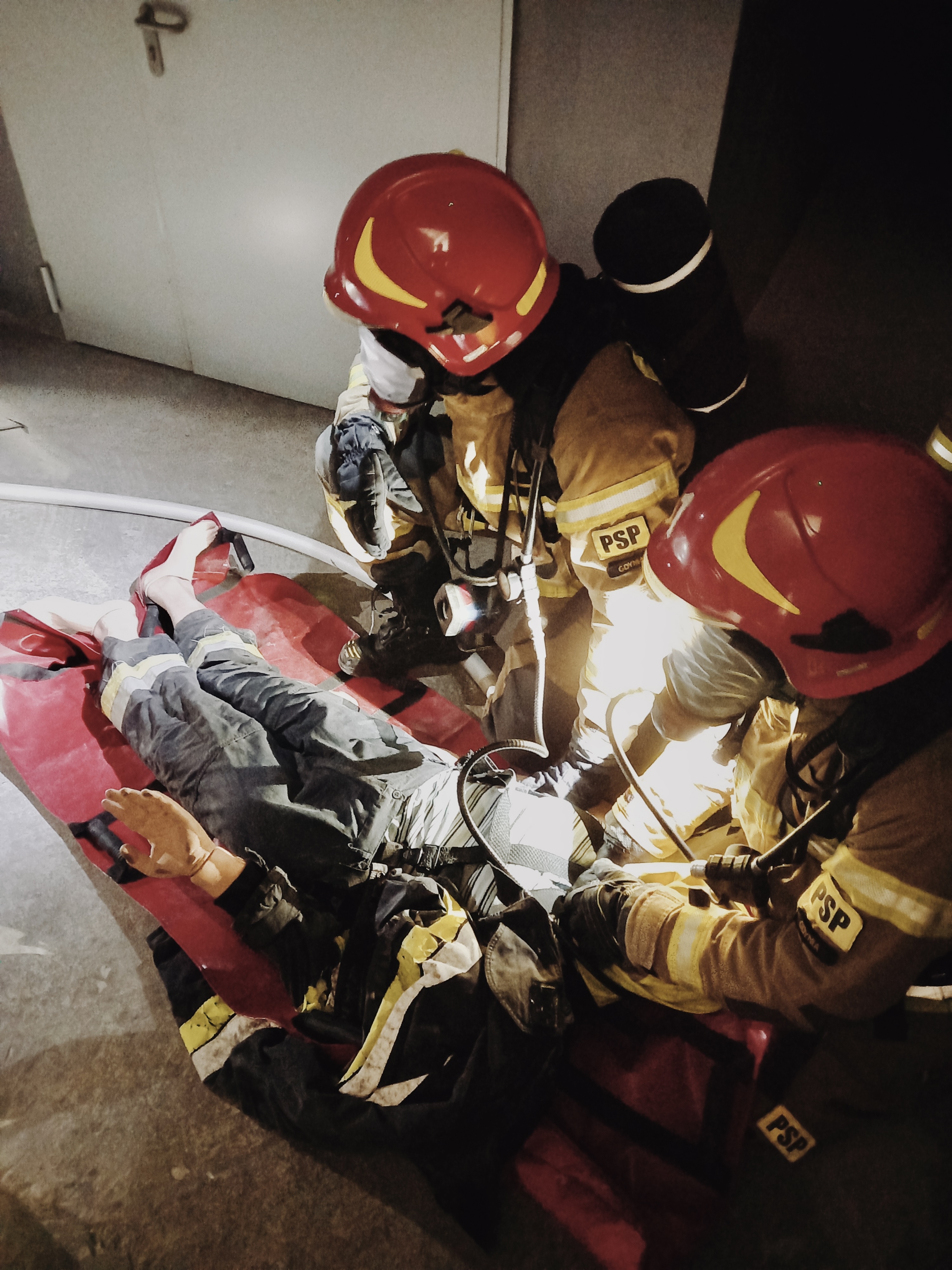 Ćwiczenia miały na celu powtórzenie procedur oraz techniki ratowania strażaka, który uległ wypadkowi podczas prowadzenia działań gaśniczych wewnątrz obiektu.