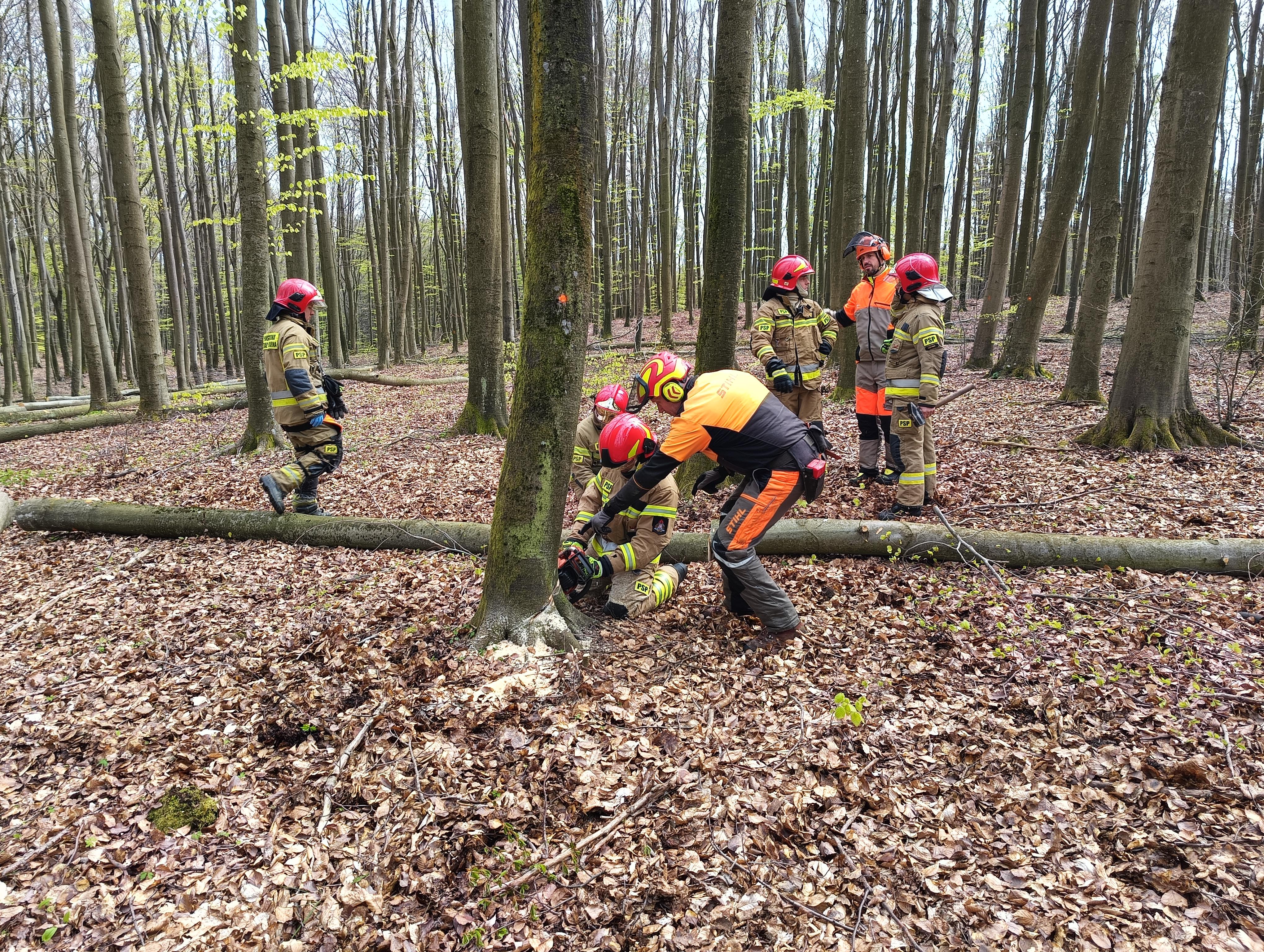 Podczas ćwiczeń strażacy mieli okazję przetestować różne modele pilarek, doskonalić swoje umiejętności w przycinaniu gałęzi oraz cięciu drzewa, a także trenować techniki obsługi pilarek w warunkach terenowych.