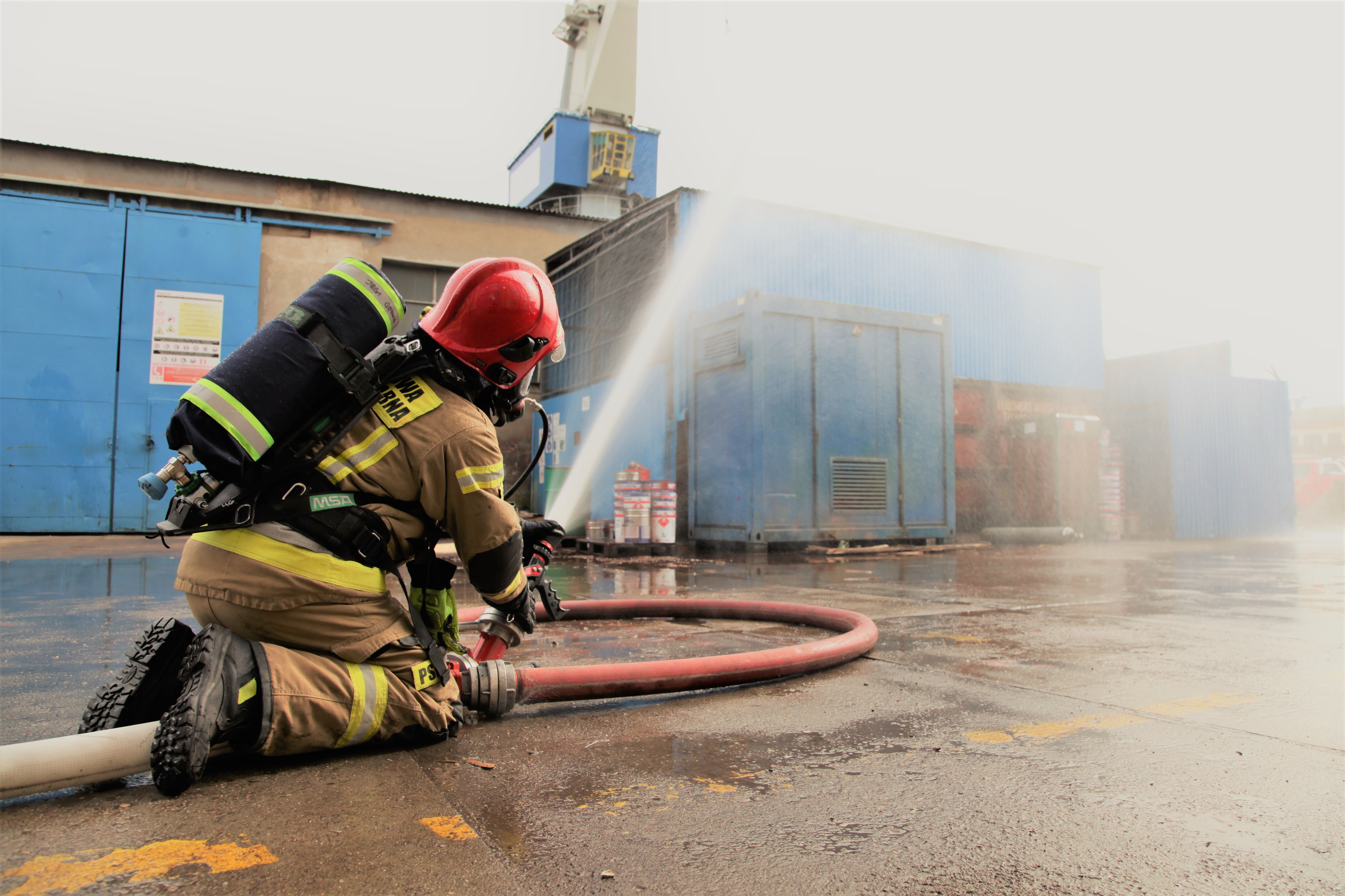 W dniach 12-14 kwietnia br. na terenie Stoczni Remontowej Nauta S.A. odbyły się ćwiczenia z zakresu prowadzenia działań gaśniczych w obiektach, ewakuacji osób zagrożonych oraz działań ratowniczych podczas zagrożeń związanych z butlami z acetylenem.