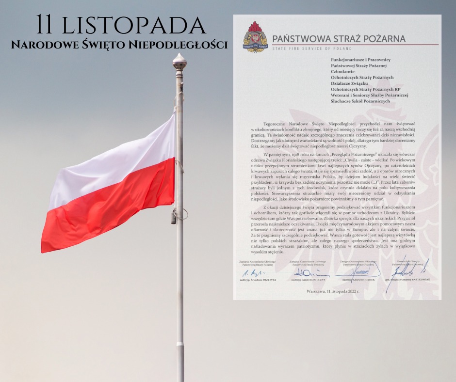 LIST KIEROWNICTWA PAŃSTWOWEJ STRAŻY POŻARNEJ Z OKAZJI ŚWIĘTA NIEPODLEGŁOŚCI