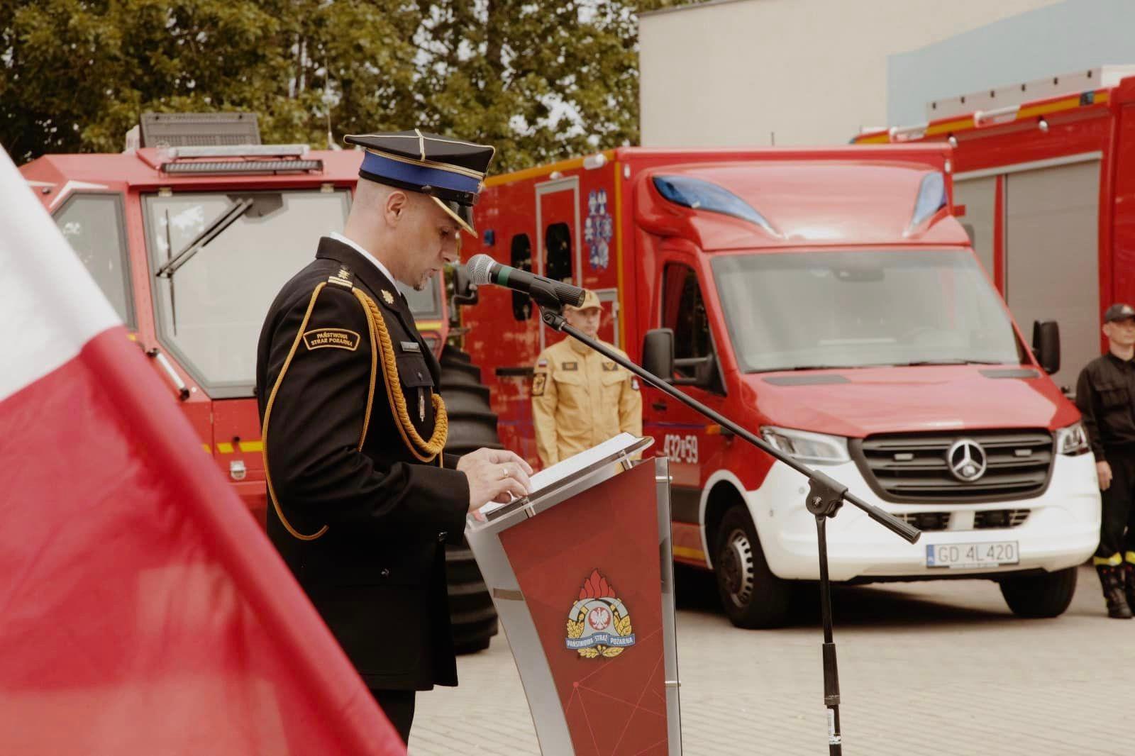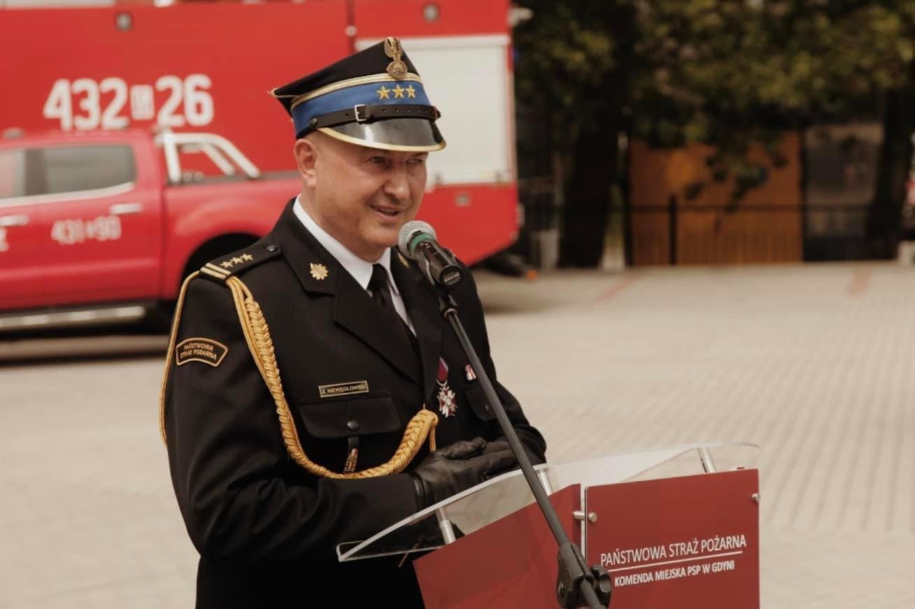 Komendant Miejski PSP w Gdyni. st. bryg. Marcin Nowak przywitał zebranych na miejscu przedstawicieli władz miasta, a także licznych funkcjonariuszy oraz pracowników cywilnych PSP.