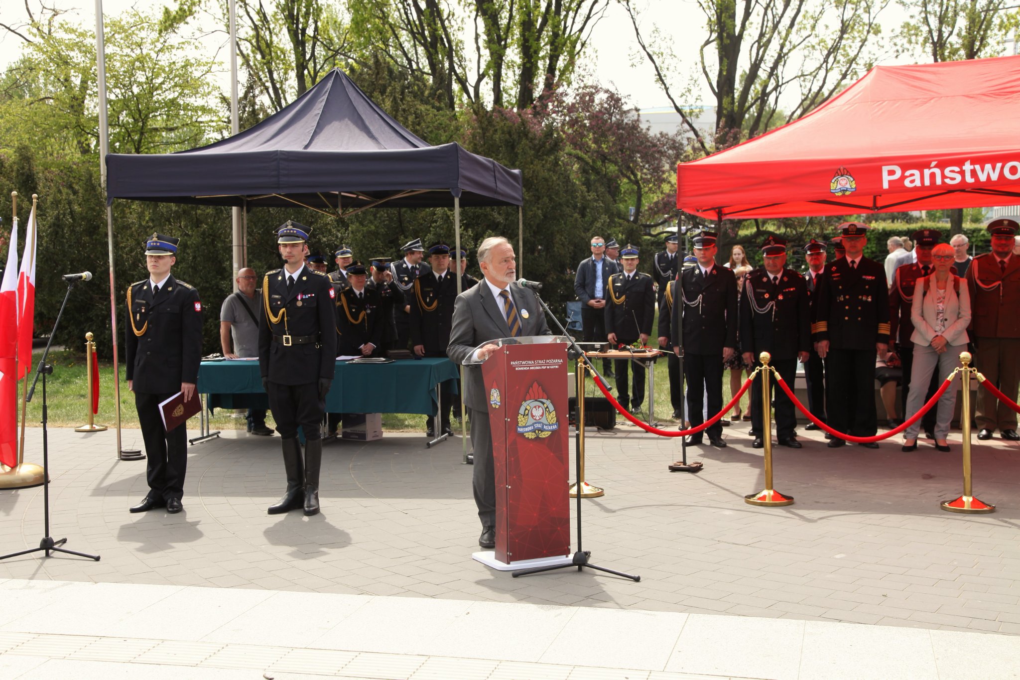 Uroczystość ta była też okazją do wręczenia decyzji o przyznaniu świadczenia ratowniczego z tytułu wysługi lat druhom z Ochotniczych Straży Pożarnych oraz nagród rzeczowych dzieciom uczestniczącym w Ogólnopolskim Turnieju Wiedzy Pożarniczej pod hasłem „Młodzież Zapobiega Pożarom”.