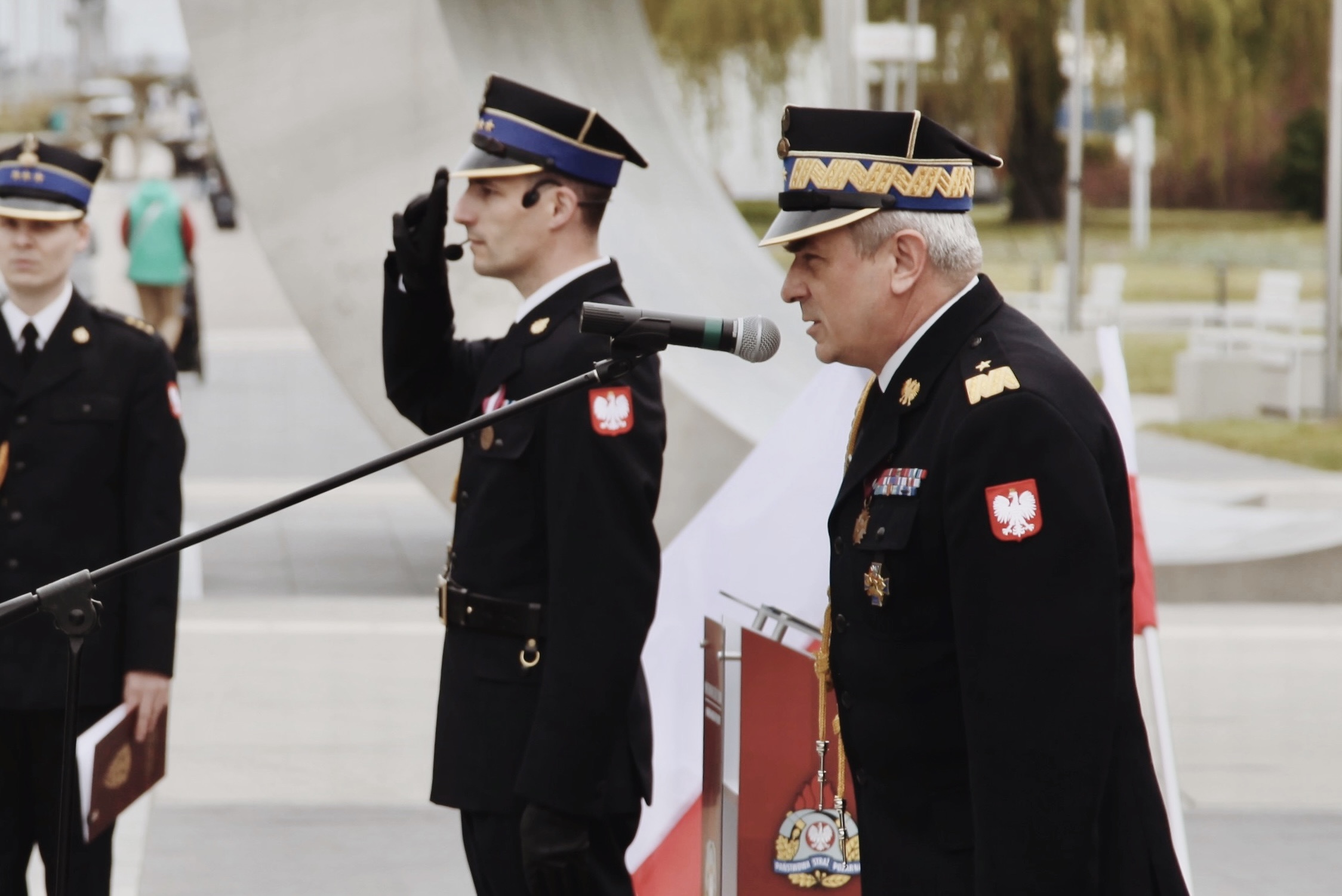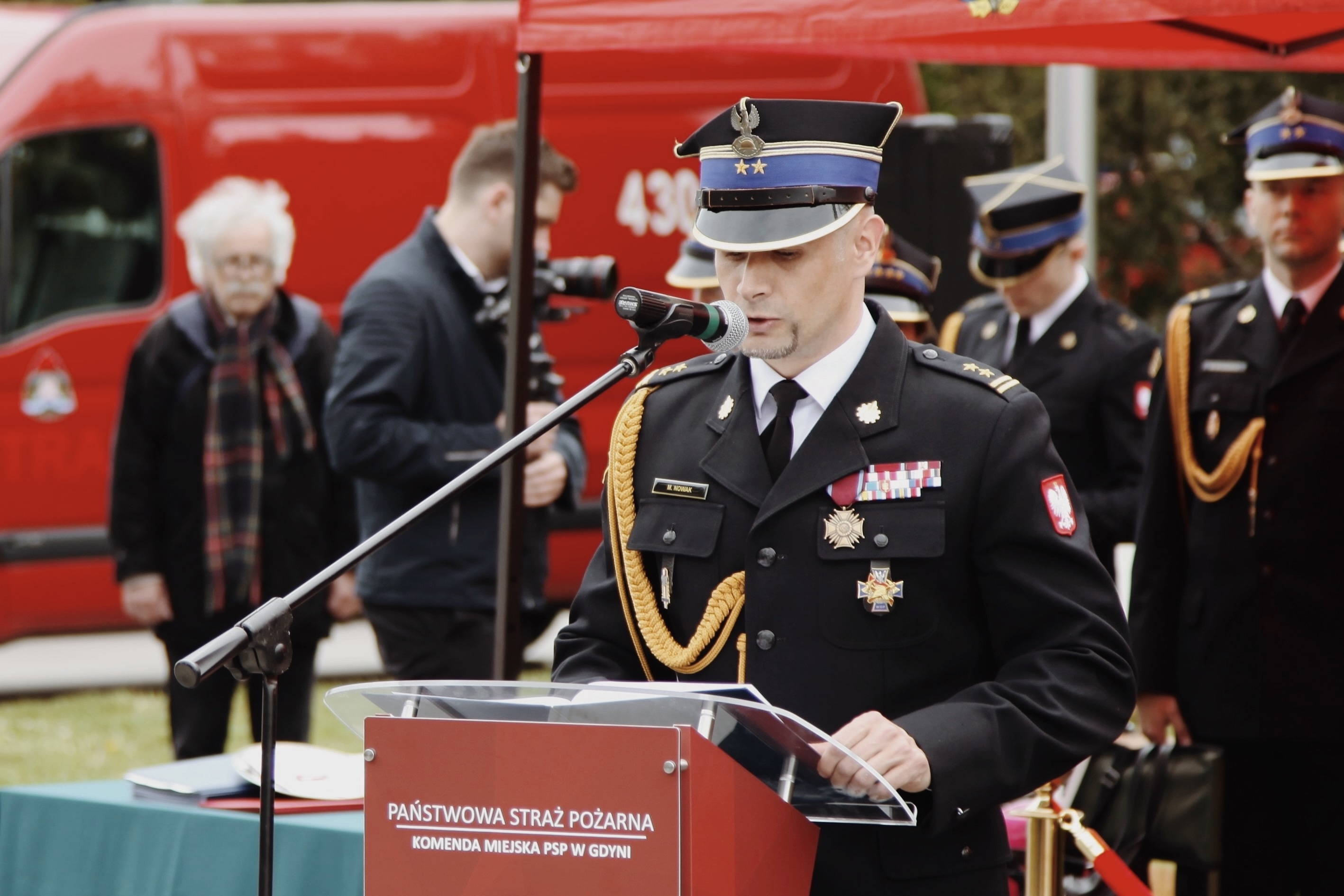 Uroczystość rozpoczęła się o godzinie 11:00, a na miejscu zgromadziło się wielu mieszkańców Gdyni, przedstawiciele władz miasta, a także liczni funkcjonariusze oraz pracownicy cywilni PSP. Pomnik Polski Morskiej, symbolizujący dumę i odwagę polskiego społeczeństwa, stanowił piękne tło dla tej wyjątkowej uroczystości, w której udział wzięli: