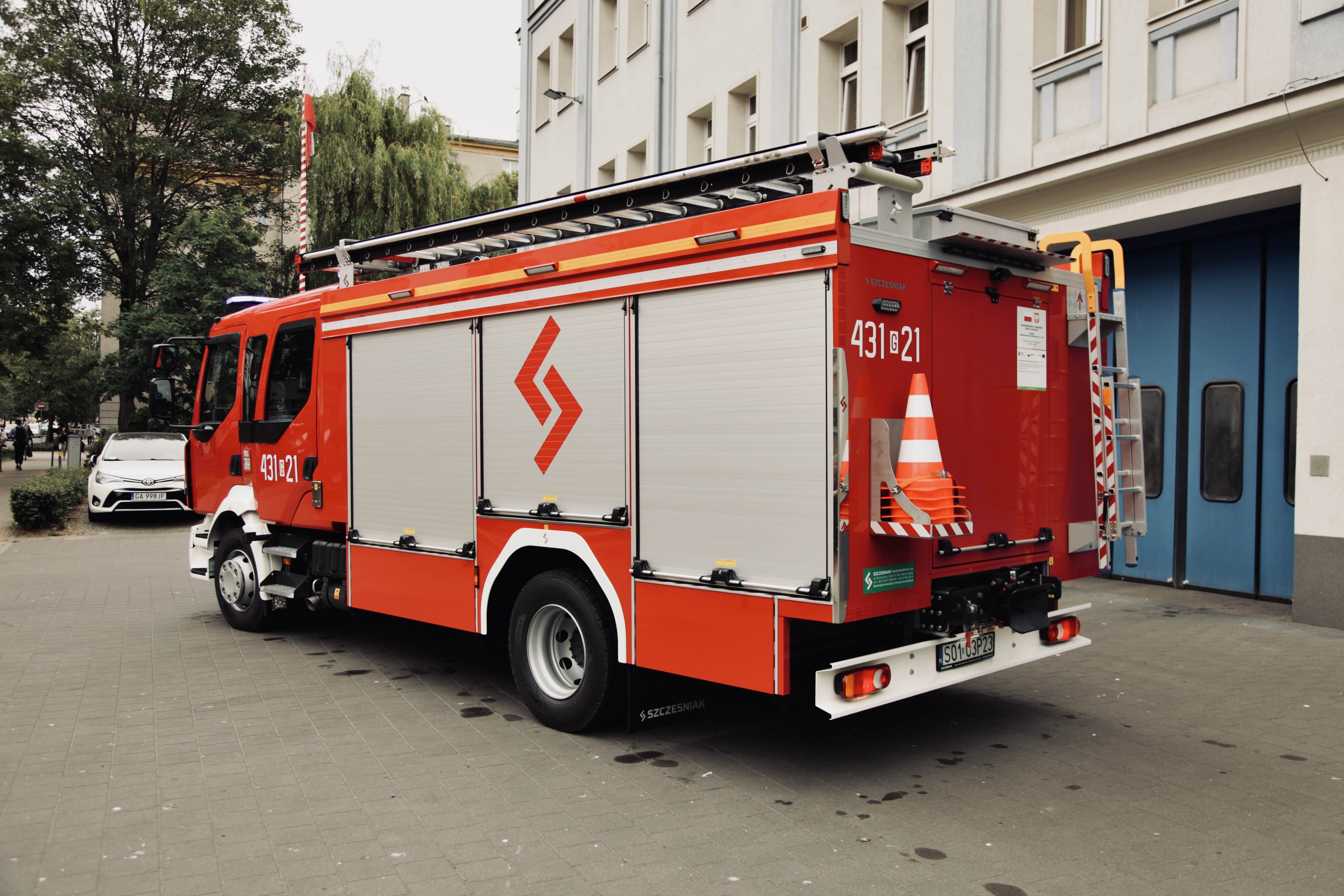 Do Komendy Miejskiej Państwowej Straży Pożarnej w Gdyni dotarł nowy średni samochód ratowniczo-gaśniczy GBA 2,5/16 na podwoziu Renault D16, układ napędowy 4x2, o dopuszczalnej masie całkowitej 16000 kg oraz mocy silnika 286 KM. Samochód wyposażony w zbiornik wody o pojemności 2500 l, autopompę dwuzakresową Godiva P2A 2010 o wydajności 1600 l/min. Pojazd posiada automatyczny dozownik środka pianotwórczego oraz wysokociśnieniową linię szybkiego natarcia ze zwijadłem elektrycznym, a także maszt oświetleniowy FIRECO 2x180W, którego wysokość od podłoża to 5330mm. Przestronna kabina 4-drzwiowa, 6-osobowa w układzie 1+1+4 zaadaptowana w taki sposób by zwiększyć komfort i bezpieczeństwo strażaków. Wyposażona m.in. w mocowania dla aparatów ODO wraz z półkami na maski, uchwyty na hełmy, uchwyt do trzymania dla załogi oraz systemy ładowania radiostacji nasobnych i latarek, wraz z programatorami czasowymi.
