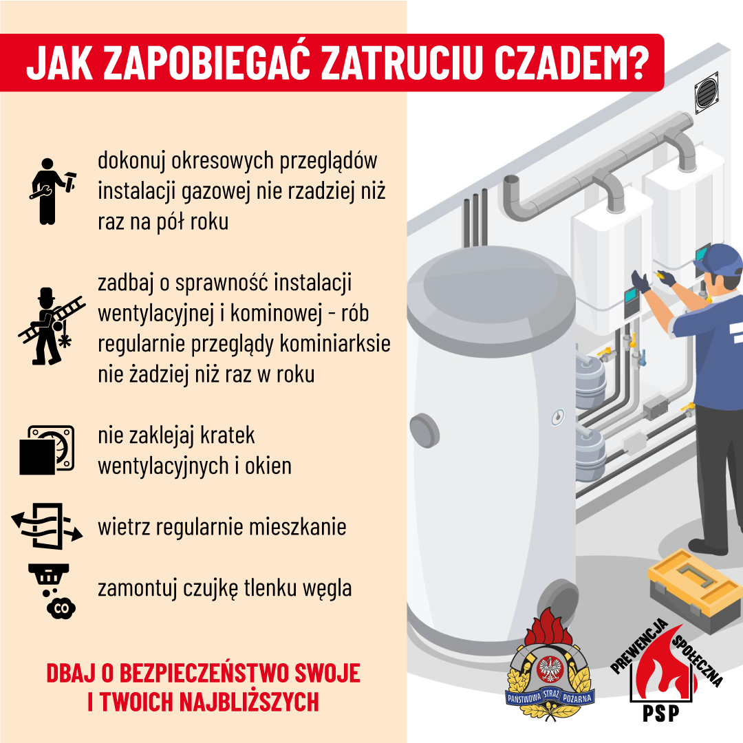 Podczas wizyt strażacy i strażnicy miejscy przekażą mieszkańcom praktyczne informacje dotyczące prawidłowej wentylacji pomieszczeń, bezpiecznego użytkowania urządzeń grzewczych oraz sposobów reagowania w sytuacji zagrożenia. W ramach działań profilaktycznych rozdawane będą również czujki tlenku węgla oraz czujniki dymu.