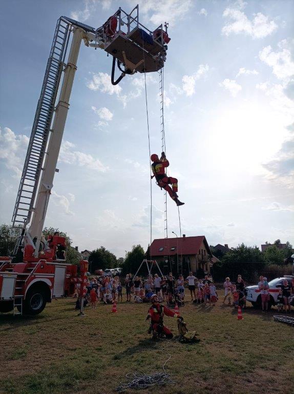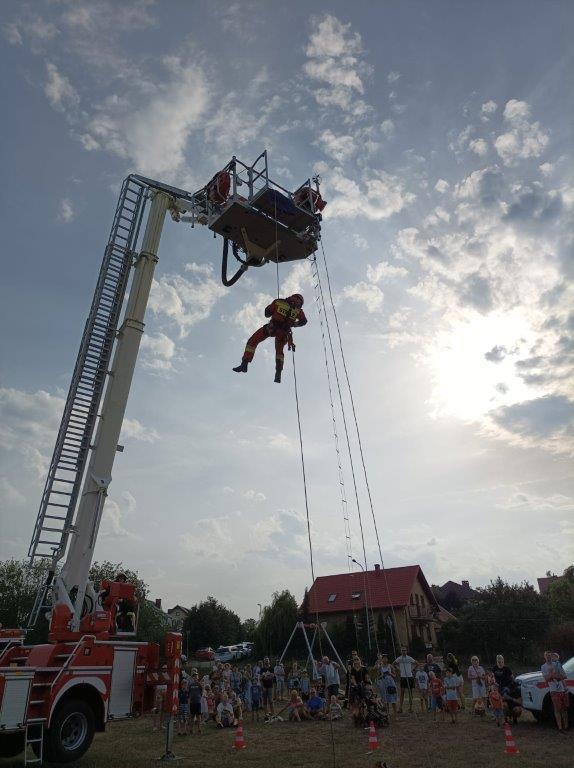 W dniu 19.08.2022r. szczególnie wyjątkowym dla gminy Kosakowo z racji otwarcia nowo wybudowanej remizy dla Ochotniczej Straży Pożarnej w Kosakowie, Specjalistyczna Grupa Ratownictwa Wysokościowego „Gdynia”/przy udziale ratowników z KP PSP Wejherowo/ zaprezentowała się w pokazie ratownictwa. Pokaz grupy obejmował zademonstrowanie specjalistycznego sprzętu oraz umiejętności jej członków.