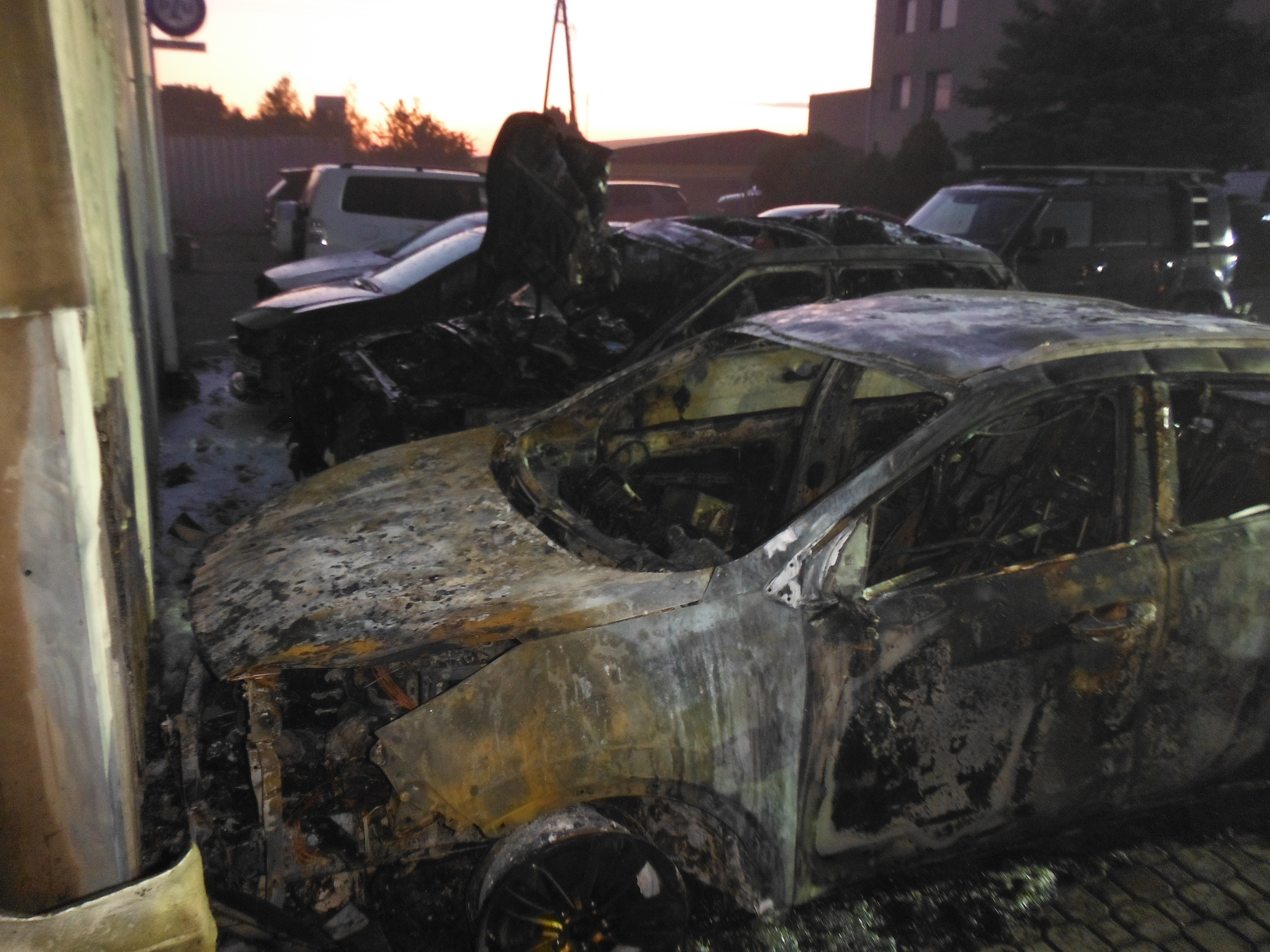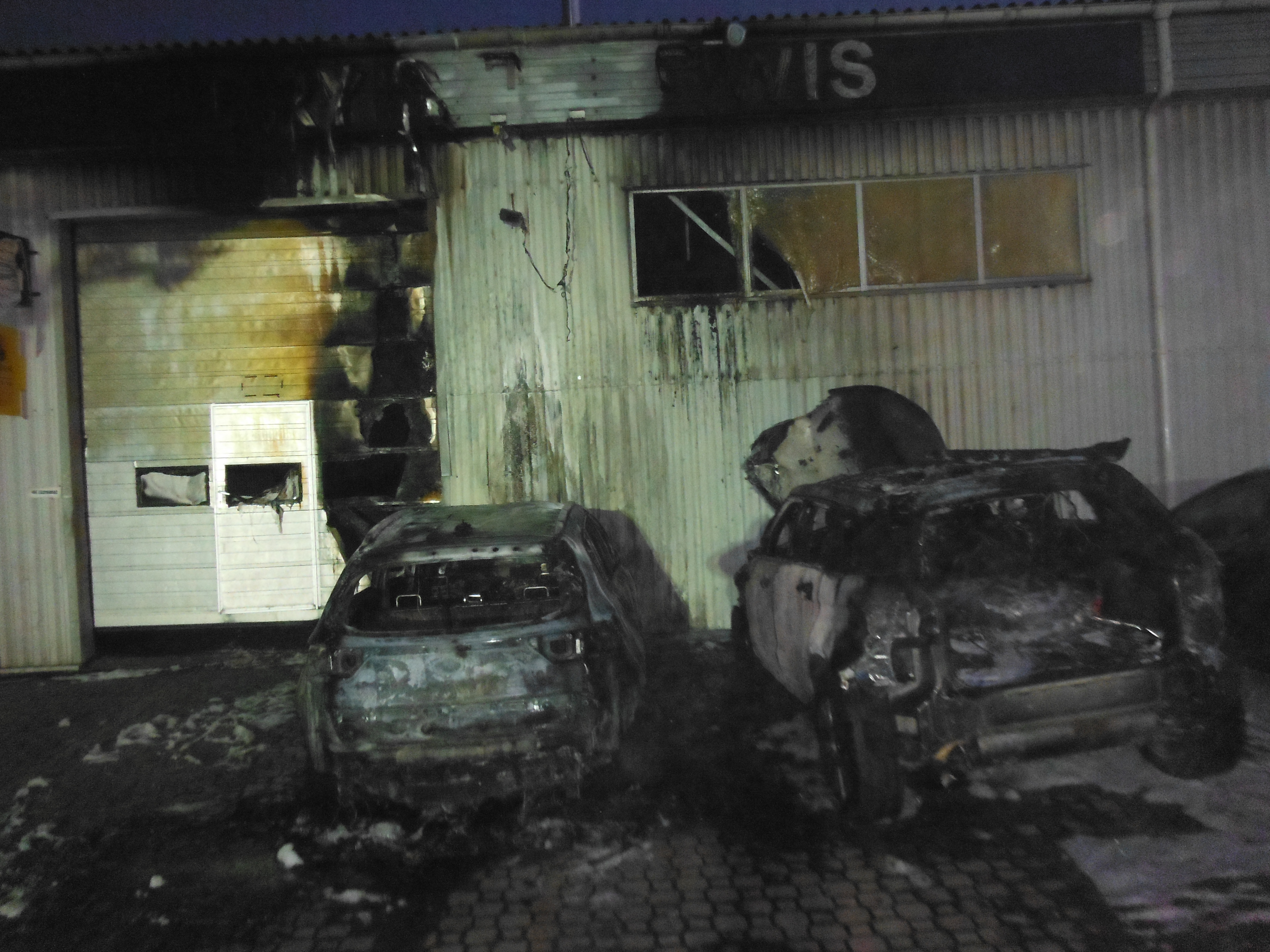 Na miejsce zadysponowano 5 zastępów Państwowej Straży Pożarnej. Działania polegały na zabezpieczeniu miejsca zdarzenia oraz ugaszeniu pożaru. Całkowitemu spaleniu uległo 13 samochodów osobowych natomiast 5 samochodów osobowych oraz ściana hali serwisowej uległo częściowemu spaleniu. W wyniku zdarzenia nikt nie ucierpiał.