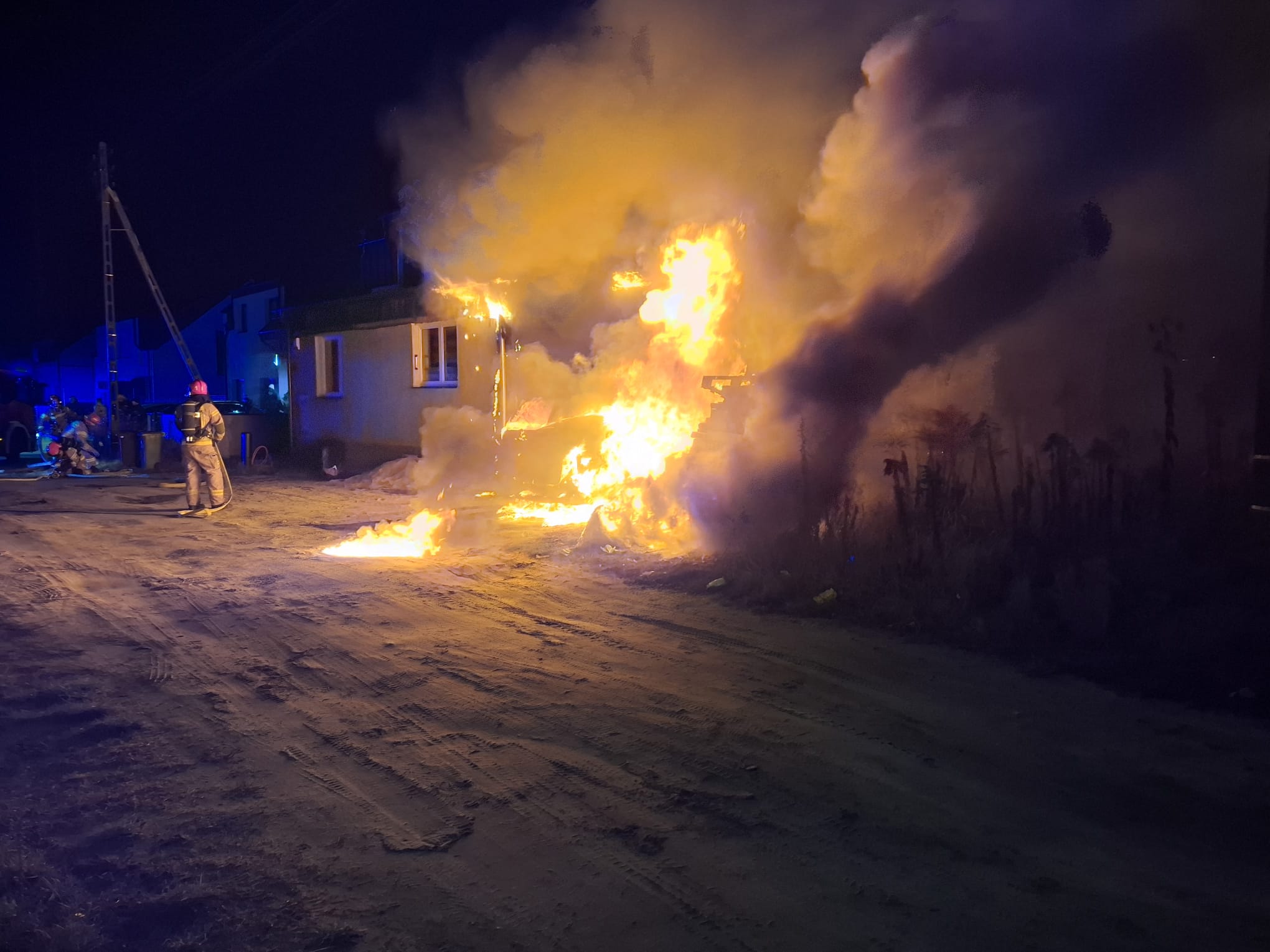 W dniu 17 grudnia 2025 roku do Stanowiska Kierowania Komendanta Miejskiego PSP w Gdyni wpłynęło zgłoszenie o pożarze samochodów osobowych przy Alei Zwycięstwa w Gdyni. Po przybyciu zastępów Państwowej Straży Pożarnej na miejsce zdarzenia stwierdzono pożar rozwinięty dwóch samochodów osobowych zaparkowanych przy budynku jednorodzinnym. Ogień objął oba pojazdy i przeniósł się na część elewacji budynku w rejonie garażu.