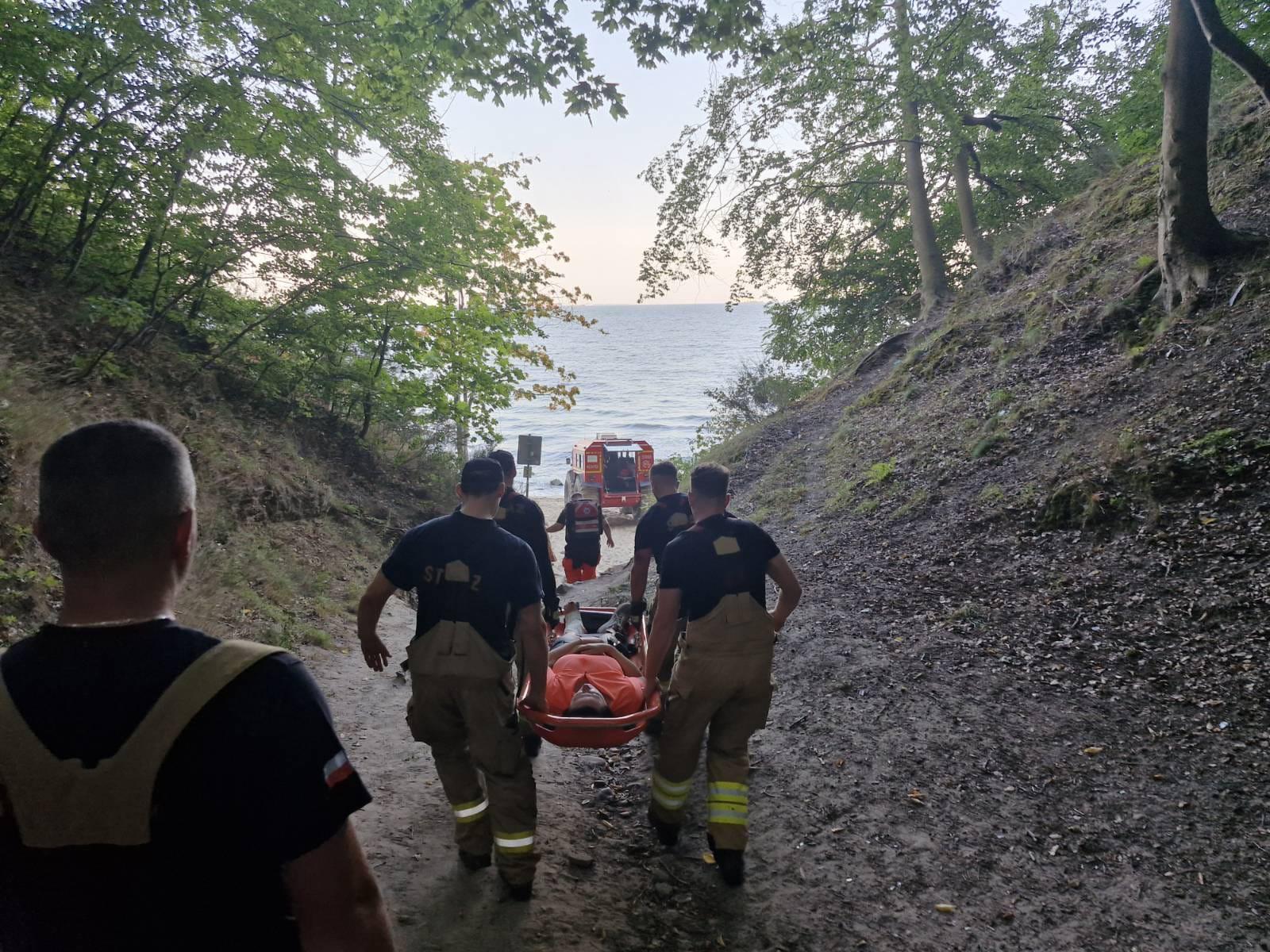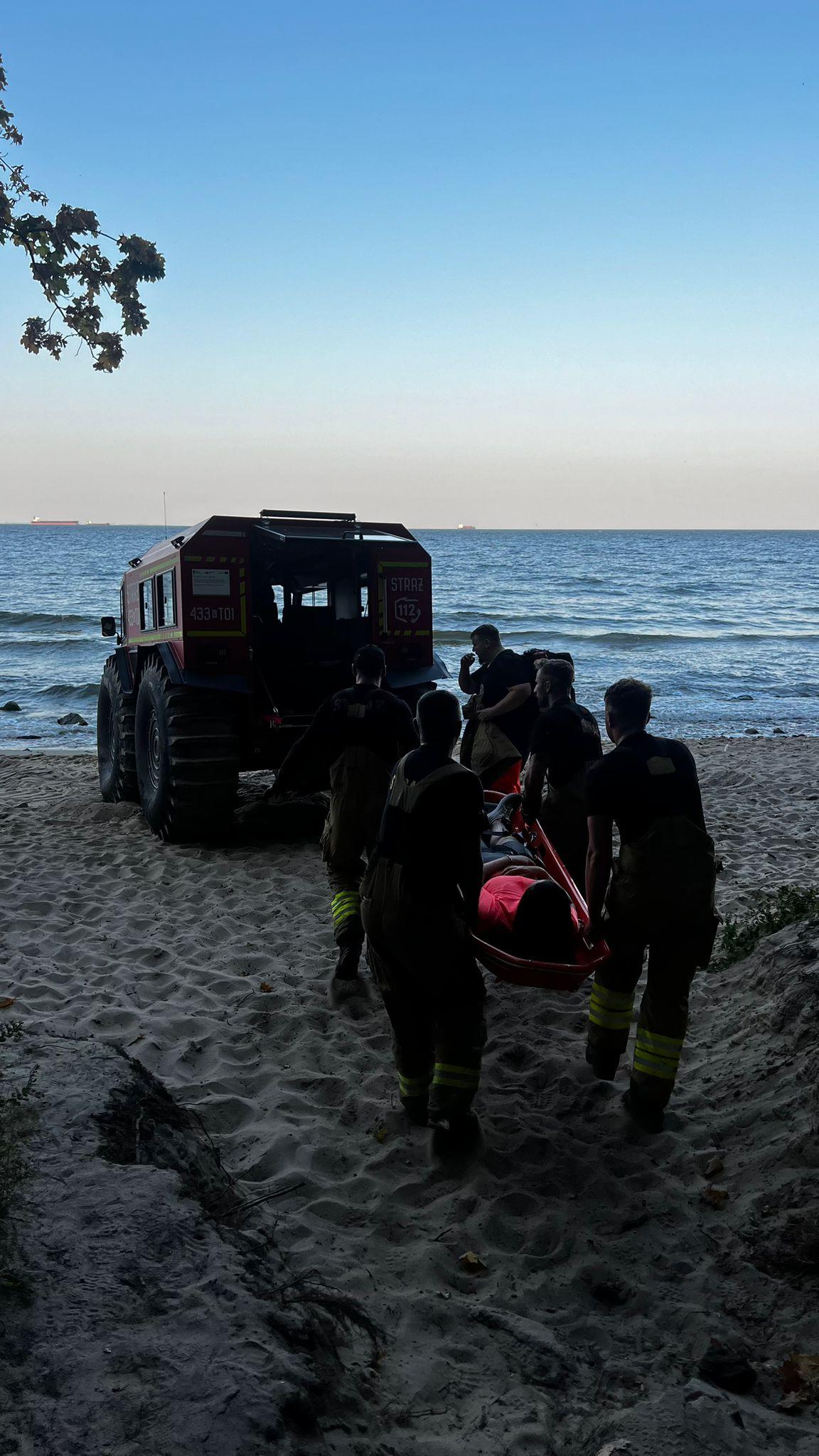 W ubiegły weekend do Stanowiska Kierowania Komendanta Miejskiego PSP w Gdyni wpłynęło zgłoszenie o wsparcie zespołu ratownictwa medycznego z Miejskiej Stacji Pogotowania Ratunkowego w Gdyni, w ewakuacji osoby poszkodowanej z urazem nogi, z trudno dostępnego terenu. Zdecydowano o zadysponowaniu zastępów z jednostek ratowniczo-gaśniczych nr 1 i nr 3, w tym transportera kołowego SHERP. Pojazd ten, znany ze swojej zdolności do poruszania się w trudnych warunkach ułatwił przetransportowanie osoby poszkodowanej do wyznaczonego miejsca przez ratowników medycznych. W dalszej kolejności osoba została przewieziona karetką do szpitala w celu dalszej diagnostyki i leczenia.