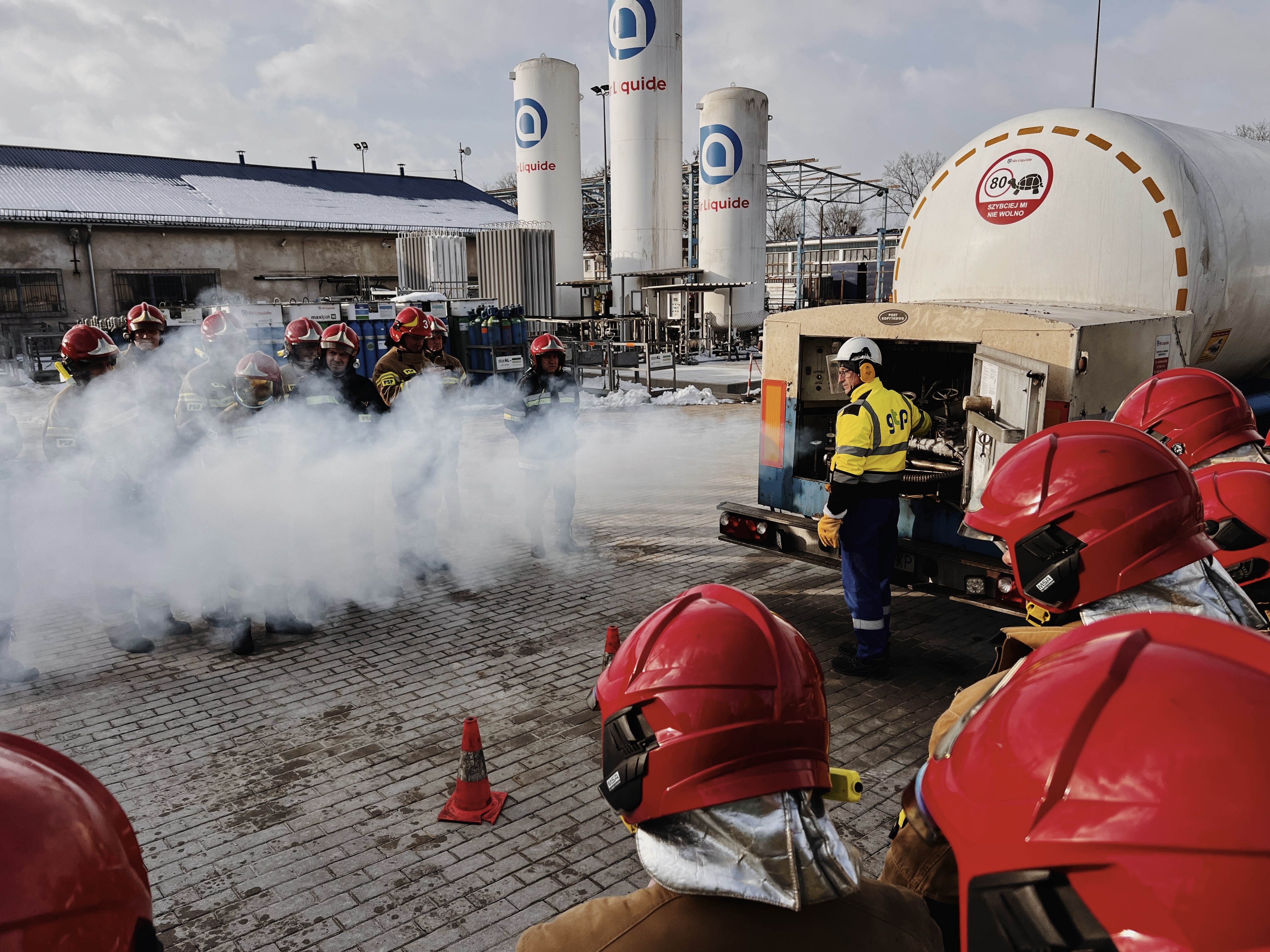 Serdeczne podziękowania kierujemy dla Komendanta Portu Wojennego Gdynia kmdr Przymysława Czernuszyc, za udostępnienie cysterny paliwowej na szkolenie, a także kierownictwu oraz pracownikom firmy Air Liquide Polska Sp. z o.o., za umożliwienie przeprowadzenia ćwiczenia praktycznego, a także profesjonalne przekazanie branżowej wiedzy.
