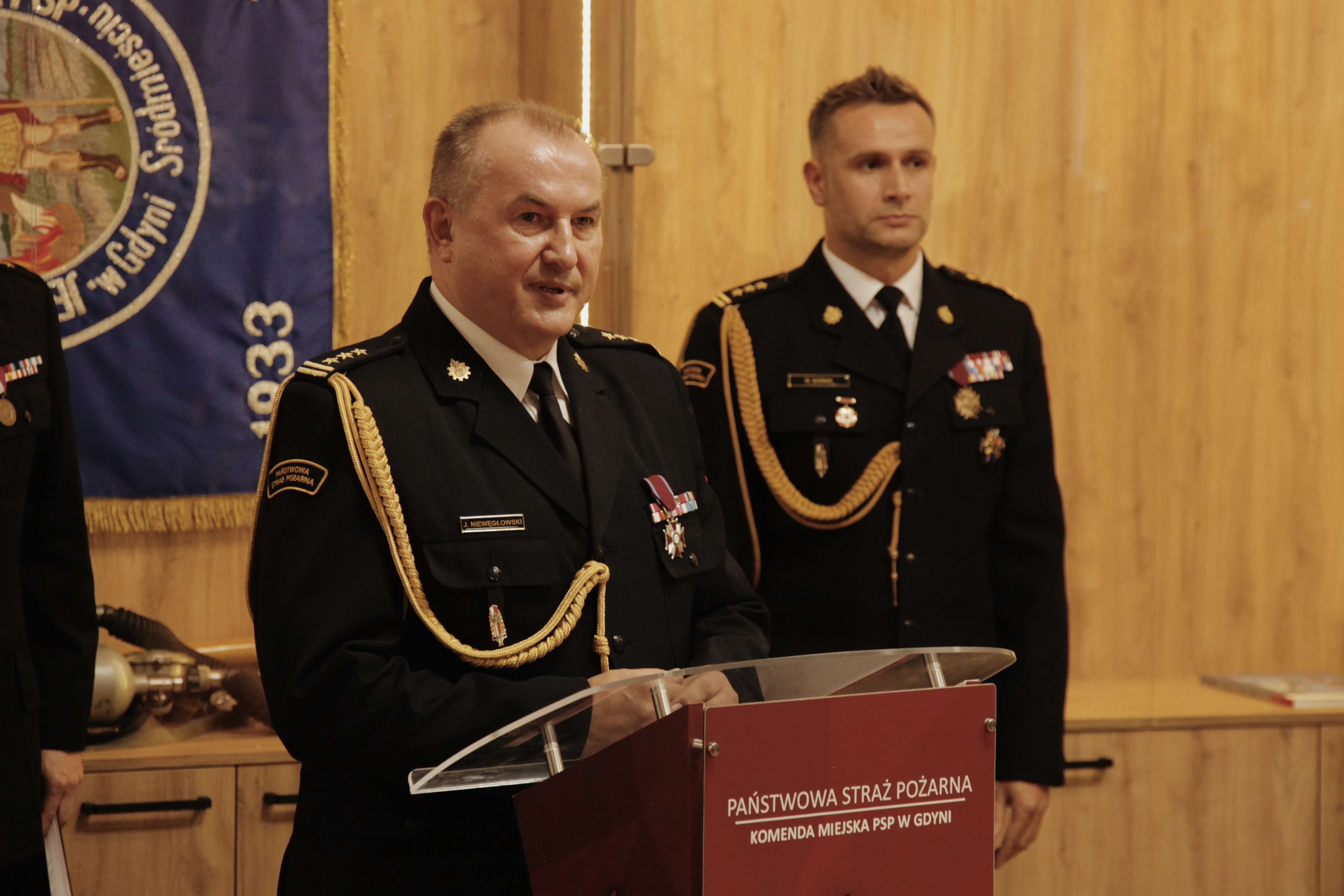 W uroczystości udział wziął st. bryg Jacek Niewęgłowski - Pomorski Komendant Wojewódzki PSP.