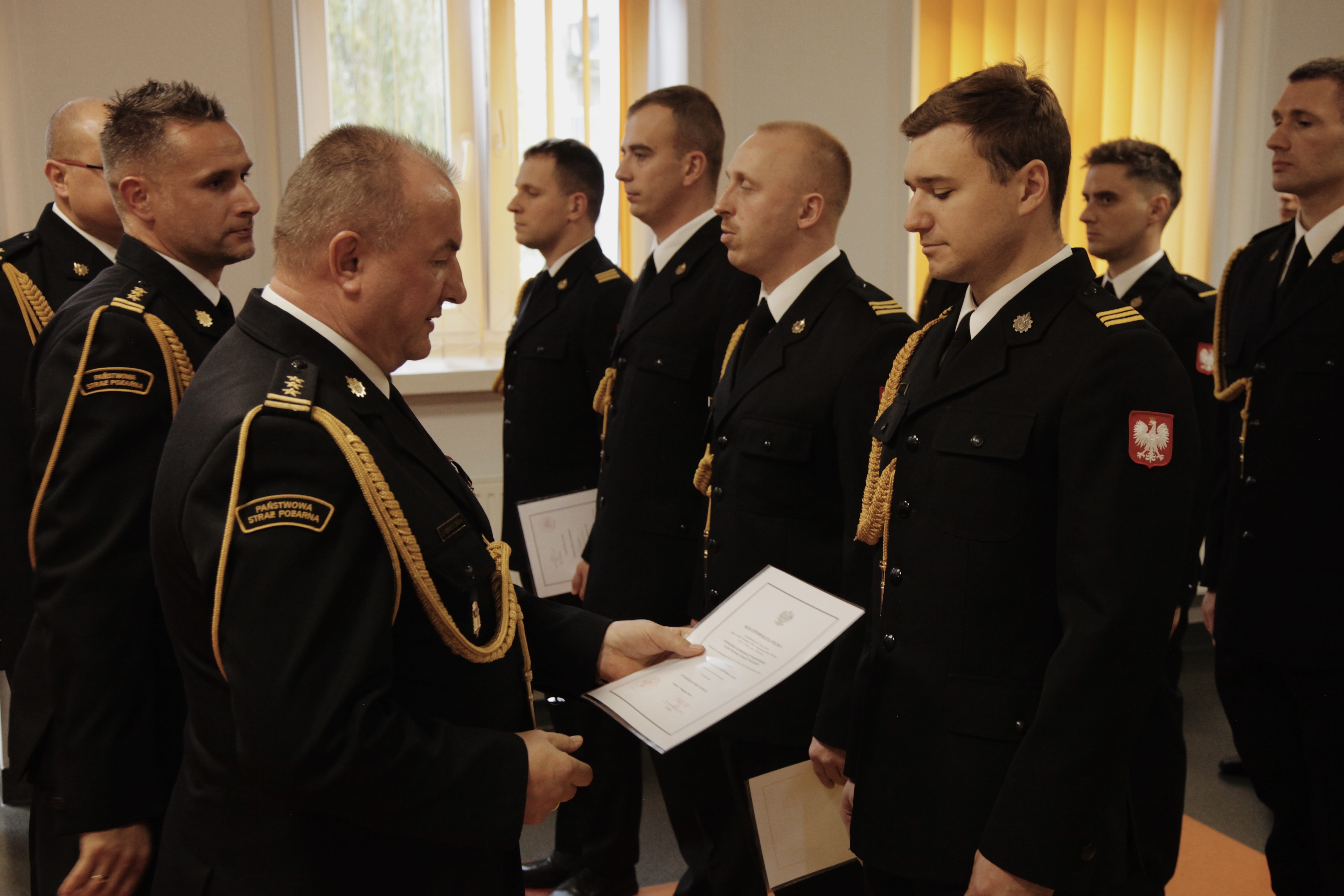 Wyróżnienia te oraz awanse są nie tylko formą uznania za dotychczasową służbę i pracę, ale także motywacją do dalszego doskonalenia się w trudnym i odpowiedzialnym zawodzie strażaka.