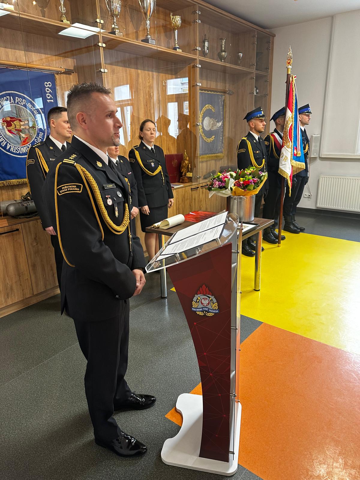 Po zakończeniu roty nastąpiło wręczenie aktów ślubowania. Komendant powitał nowych funkcjonariuszy w szeregach Państwowej Straży Pożarnej, na co odpowiedzieli słowami: „Ku chwale Ojczyzny”. Uroczystość ta symbolicznie potwierdziła ich gotowość do niesienia pomocy i odpowiedzialnej służby społeczeństwu.