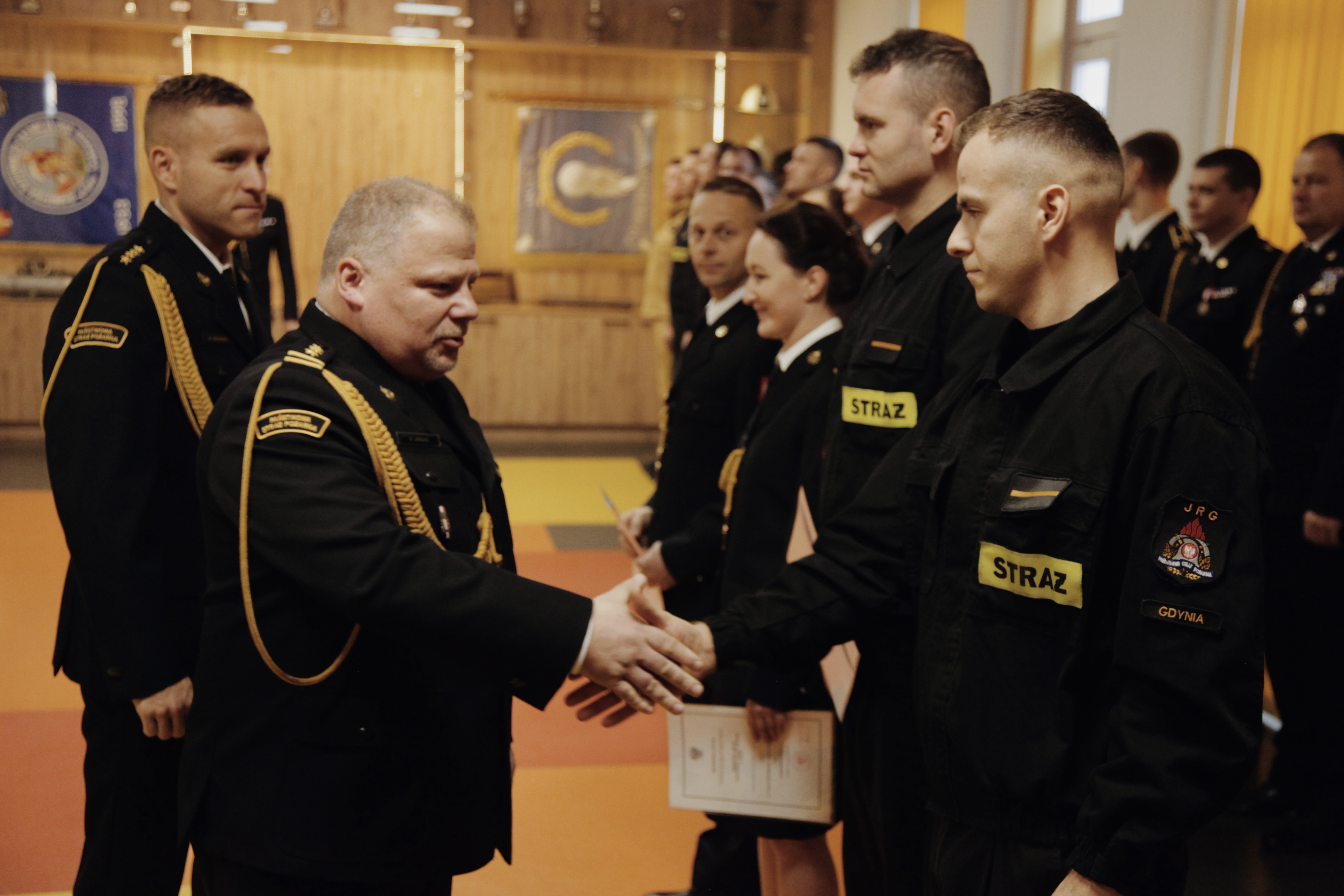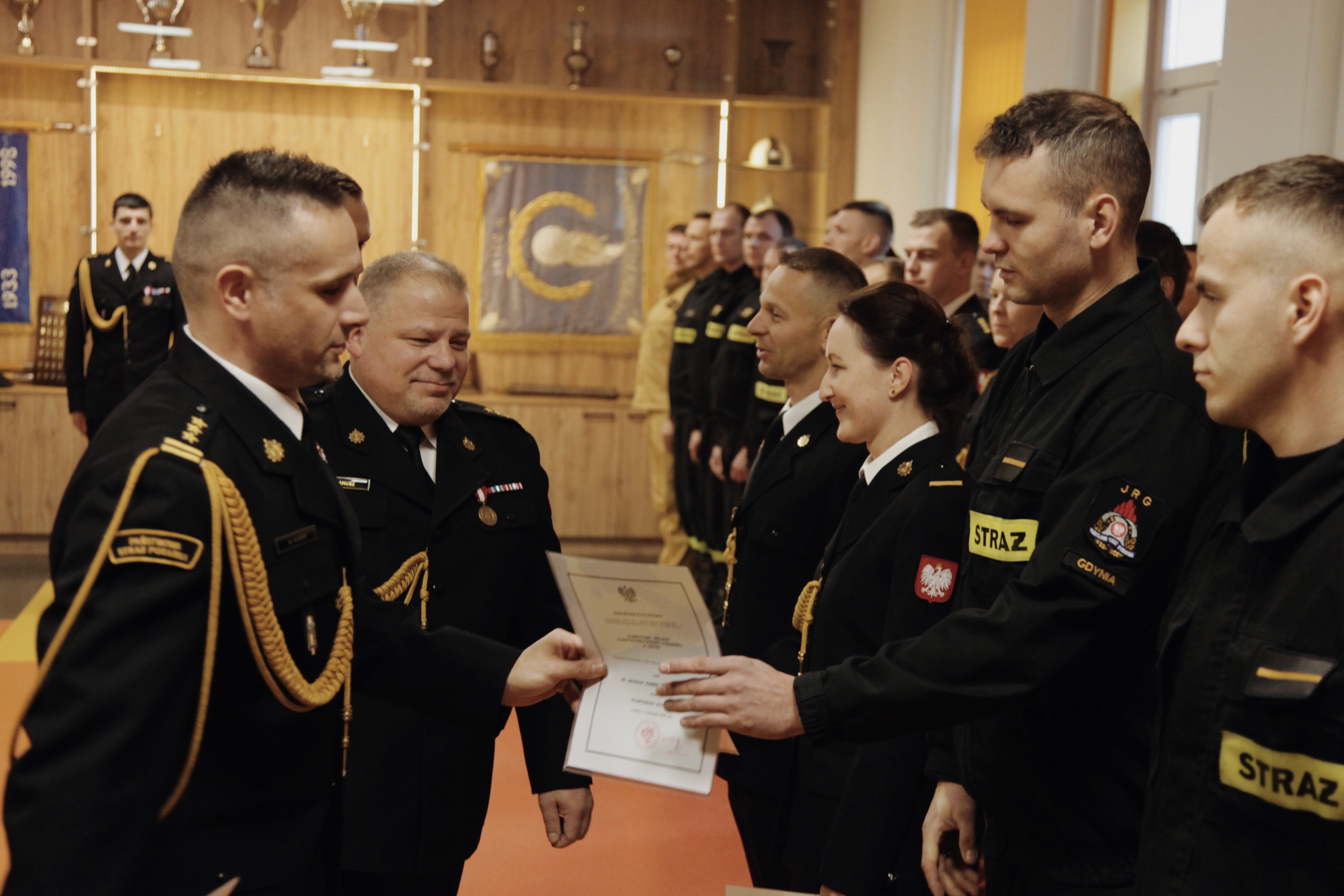 Okazji do świętowania było jednak więcej. Komendant Miejski Państwowej Straży Pożarnej w Gdyni st. bryg. Marcin Nowak awansował czterech funkcjonariuszy na wyższe stopnie służbowe.