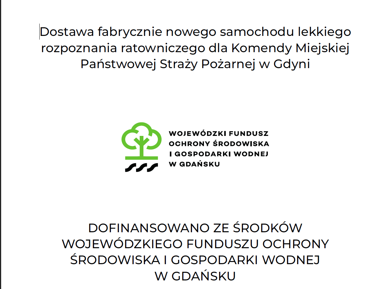 Dostawa fabrycznie nowego samochodu lekkiego rozpoznania ratowniczego dla Komendy Miejskiej Państwowej Straży Pożarnej w Gdyni - Dofinansowano ze środków Wojewódzkiego Funduszu Ochrony Środowiska i Gospodarki Wodnej w Gdańsku