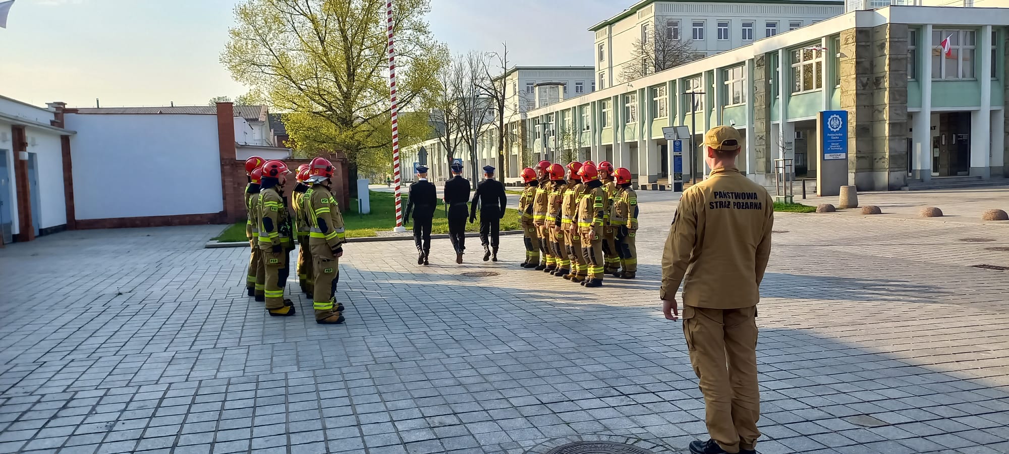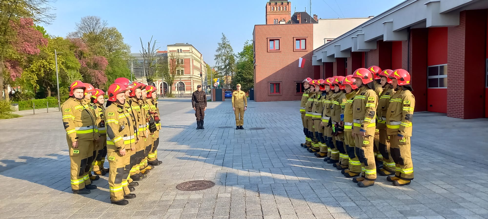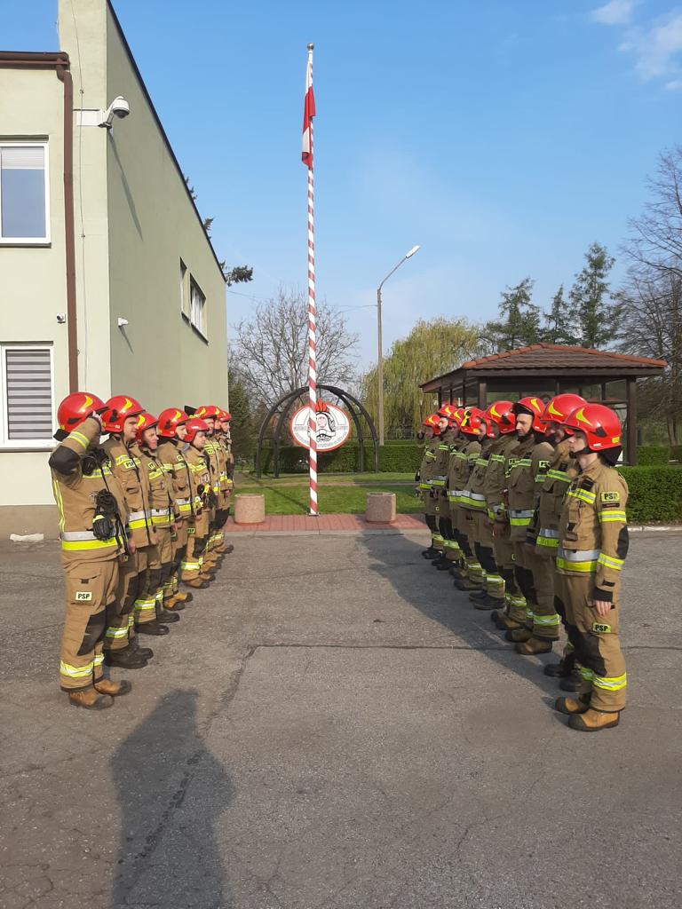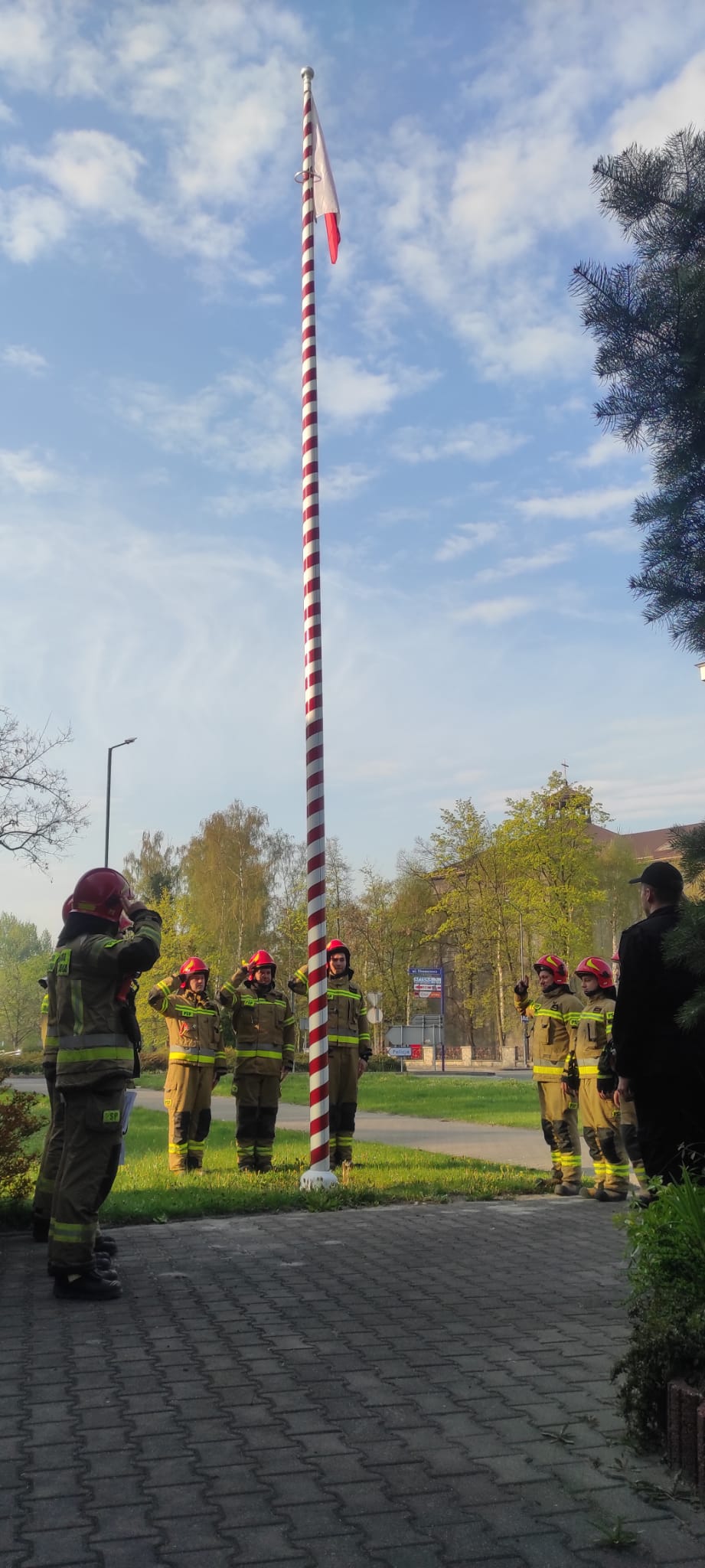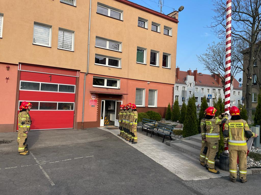 Z okazji Dnia Flagi Rzeczypospolitej Polskiej w Jednostkach Ratowniczo-Gaśniczych Komendy Miejskiej Państwowej Straży Pożarnej w Gliwicach odbyły się uroczyste zmiany służby podczas których podniesiono flagi państwowe.