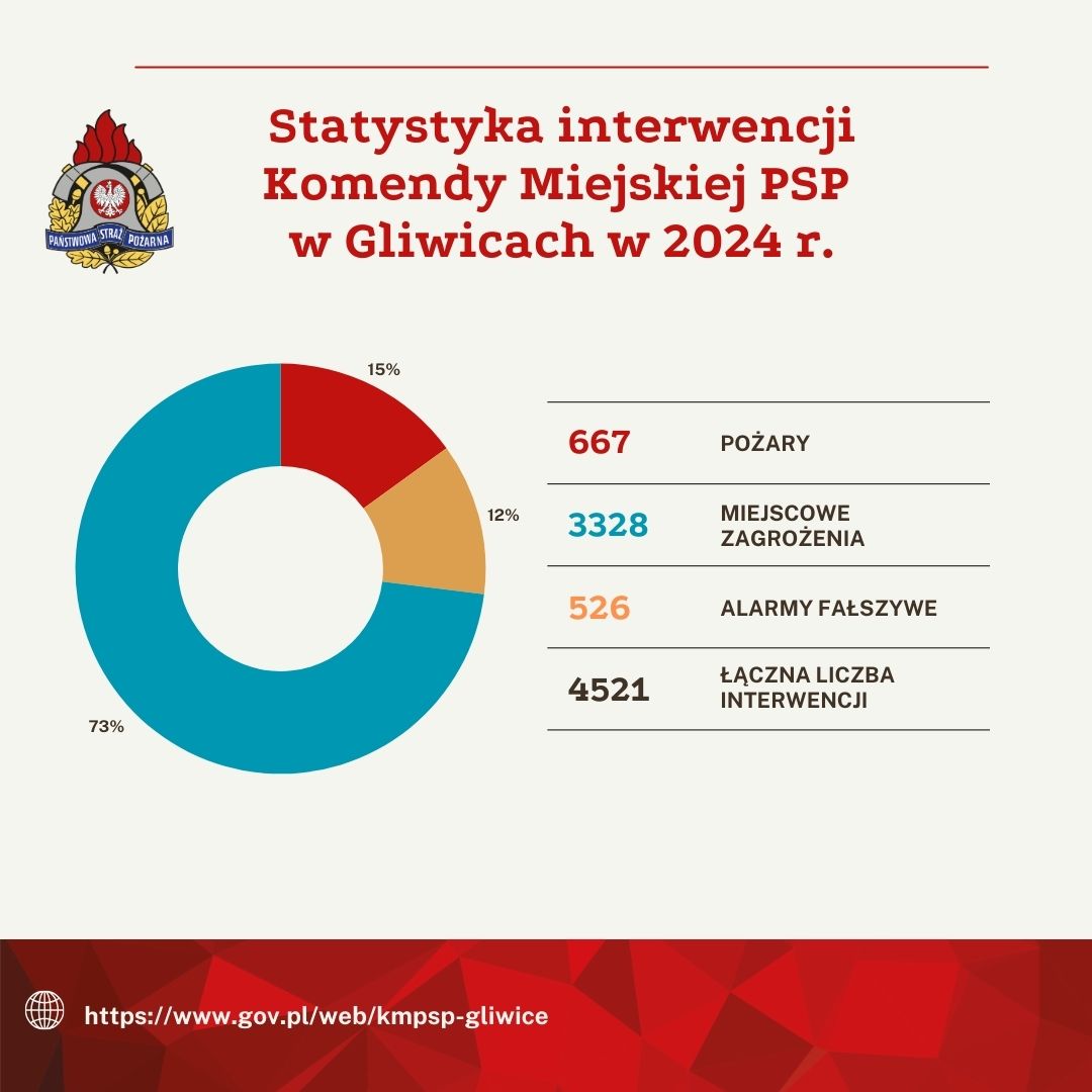 Podsumowanie interwencji Komendy Miejskiej Państwowej Straży Pożarnej w Gliwicach w 2024 roku